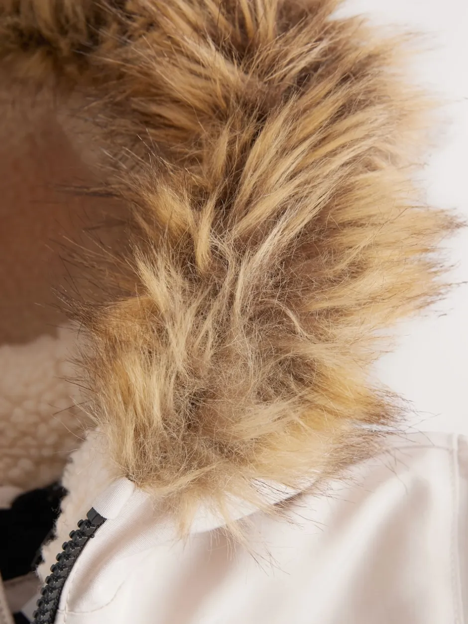 Lavable en machine. Extérieur 100% polyester. Doublure du corps : 100% polyester. Doublure de la capuche 100% de polyester. Fourrure artificielle 48% Modacrylique, 43% acrylique, 9% polyester. Poignets 98% Polyester, 2% élasthanne. Garnissage 100% polyester.