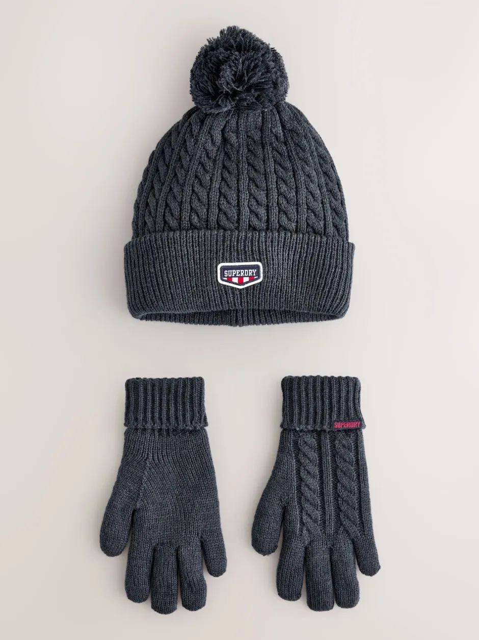 Superdry marine – Ensemble bonnet et Gants à pompons Hot