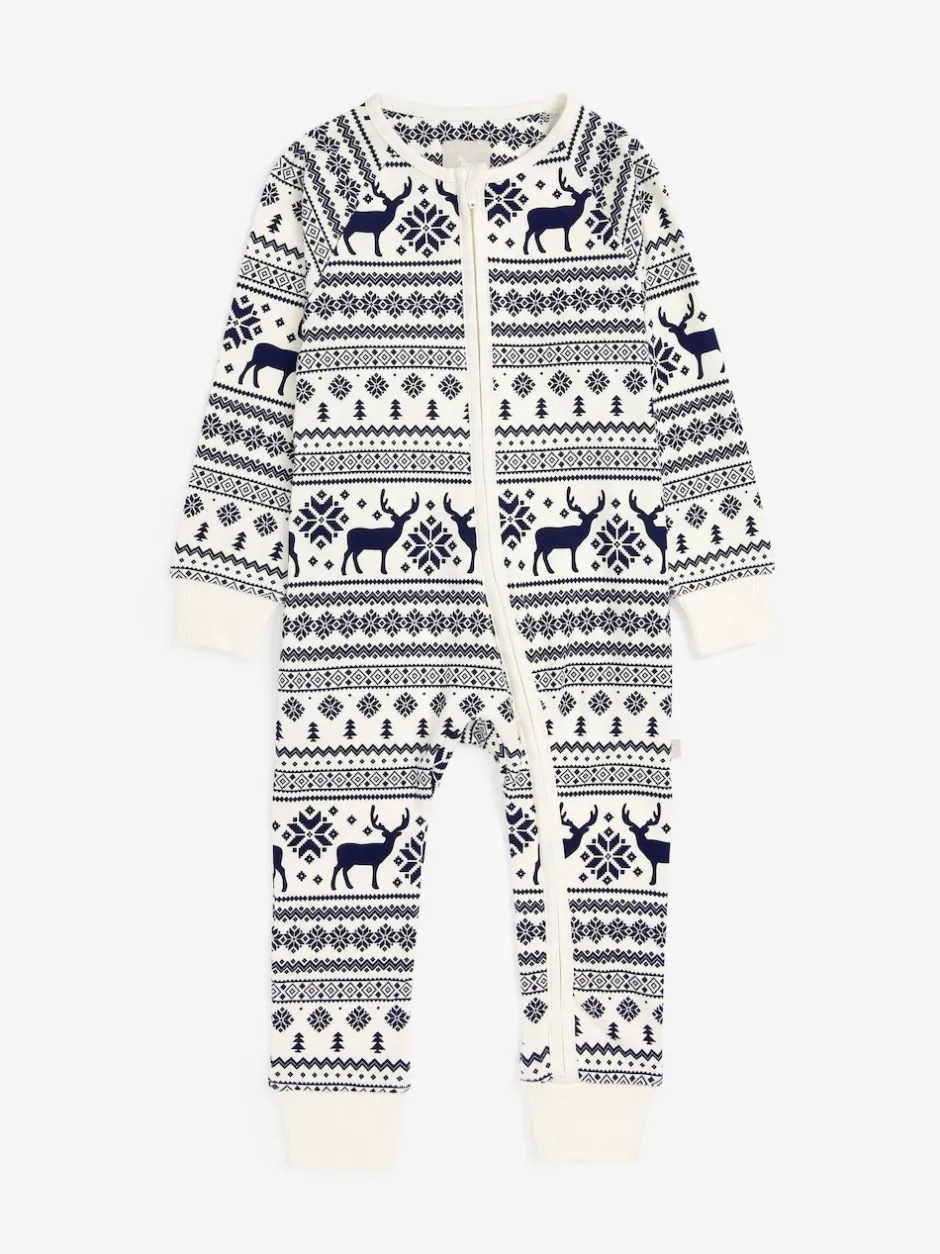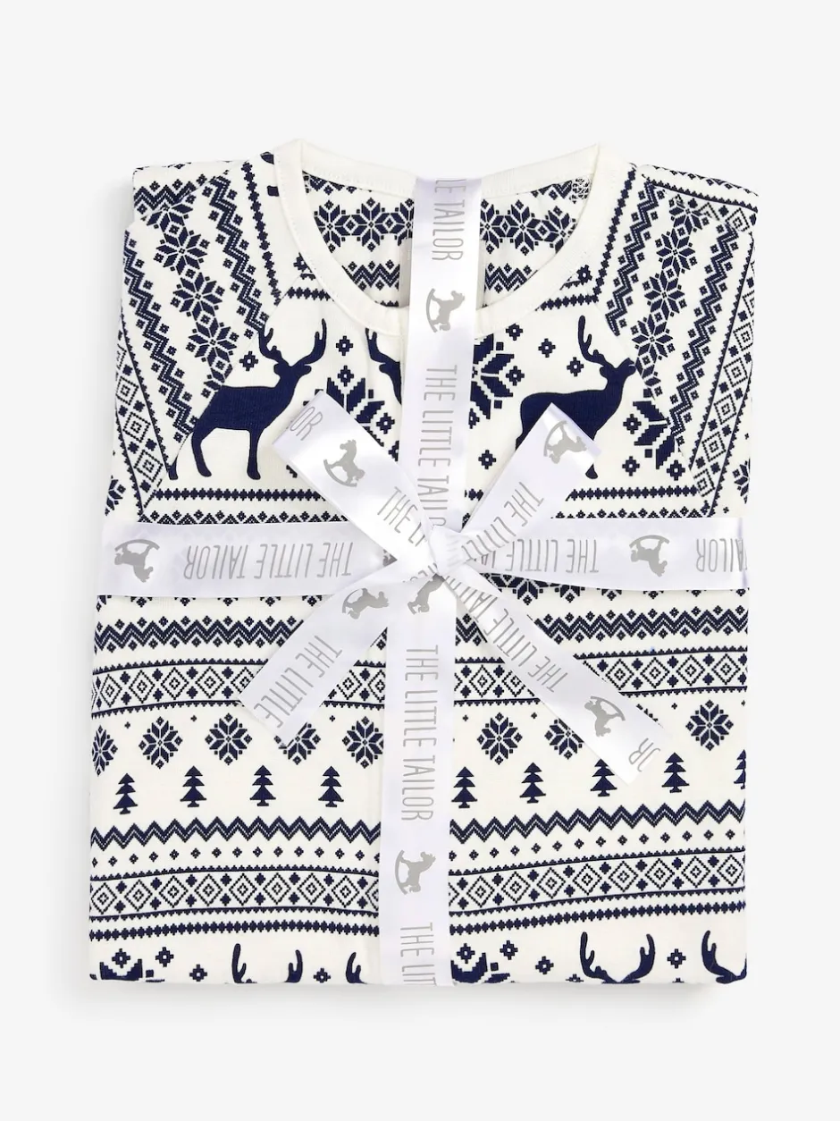 The Little Tailor Crème – Kids Reindeer Noël Motif Fair Isle 100% Coton Tout-en-un Sale