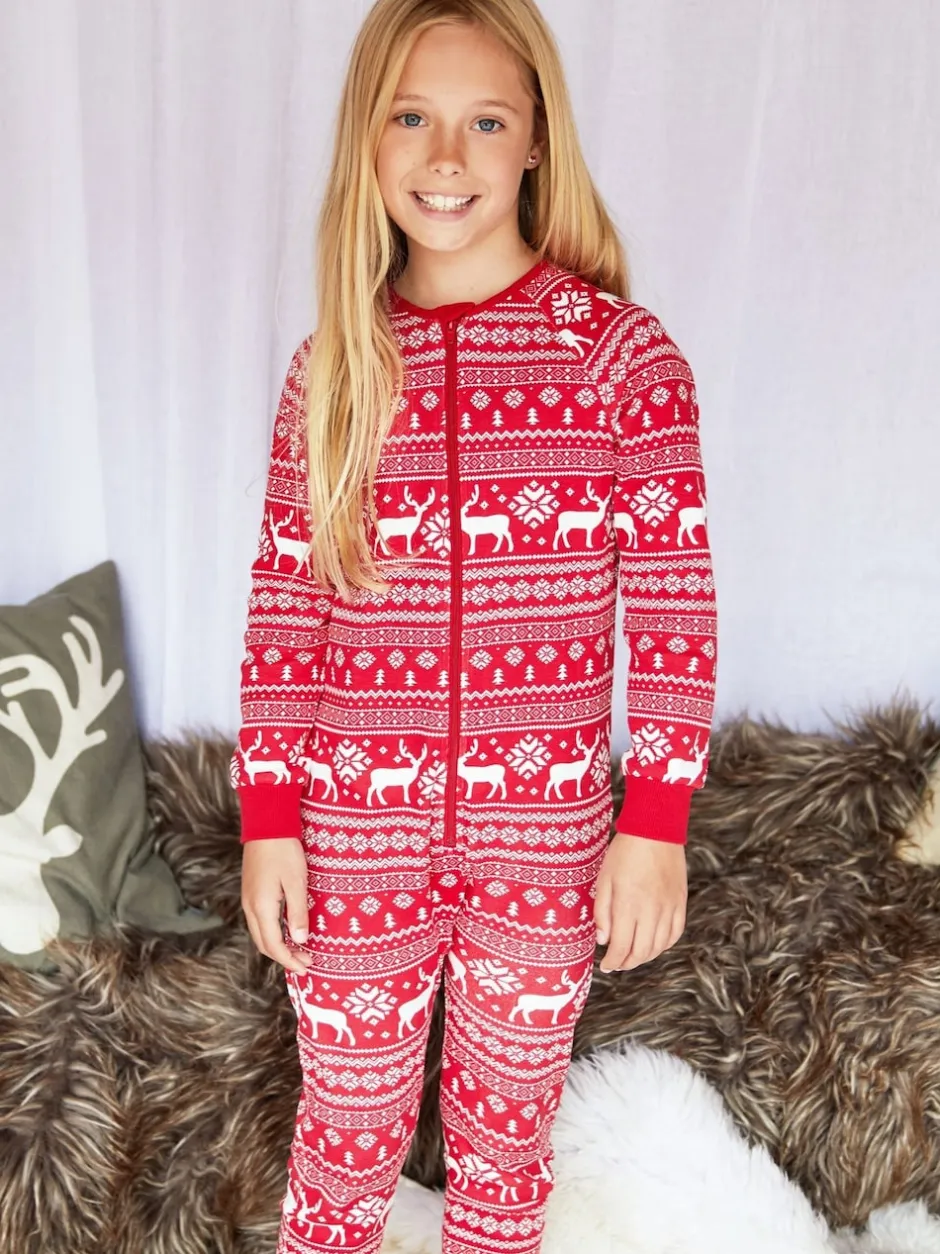 The Little Tailor Rouge – Kids Reindeer Noël Motif Fair Isle 100% Coton Tout-en-un Online