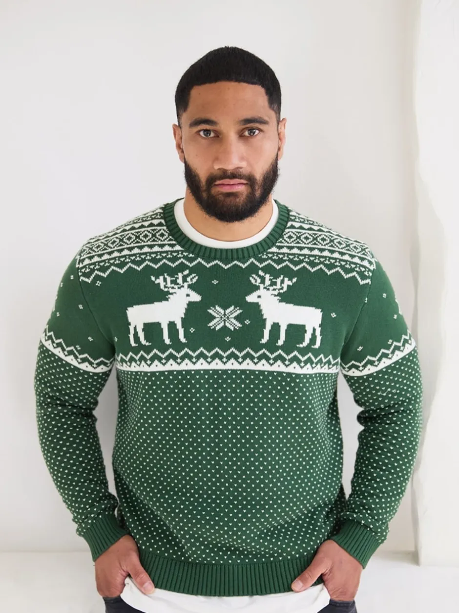 The Little Tailor Vert – Pull à motif jacquard et renne de Noël Best