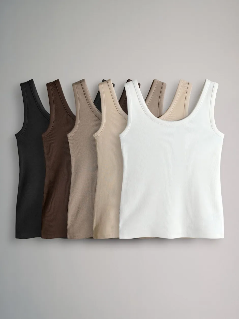 The Set Blanc/noir/marron/marron taupe/neutre – 5 gilets côtelés à col rond Outlet