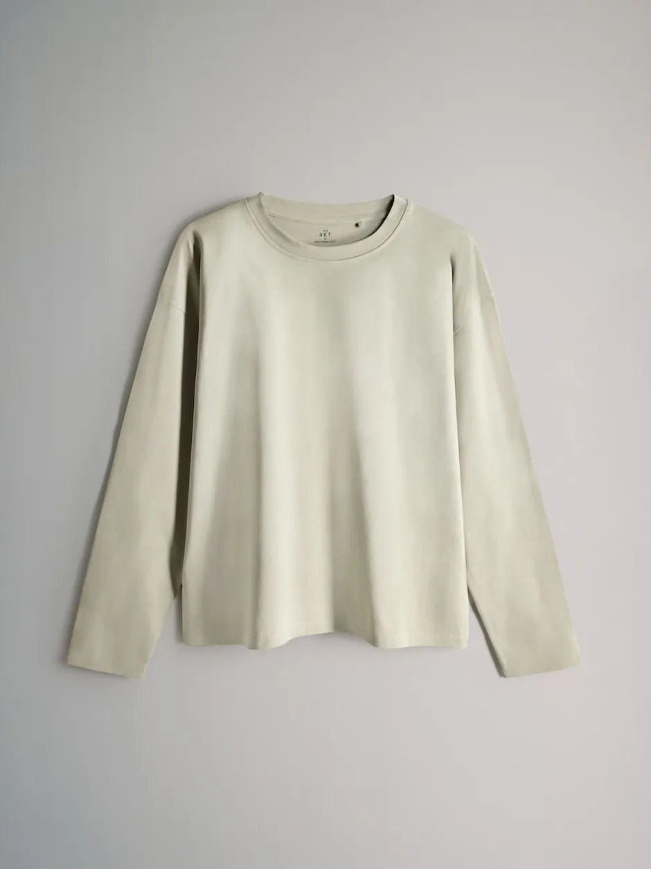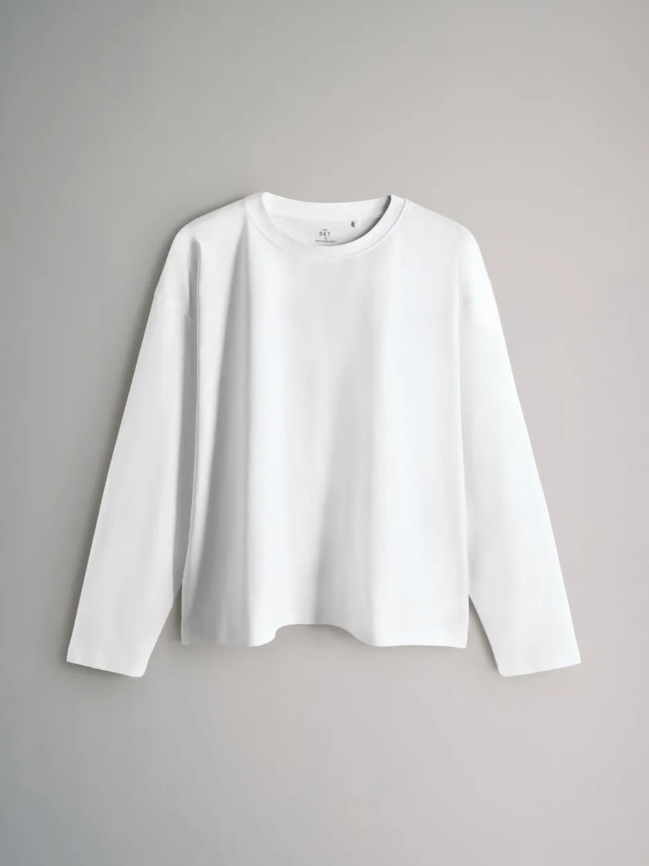 The Set – lot de 4 t-shirts décontractés à manches longues 100% coton Vert clair/Rose/Blanc/Rayure Discount