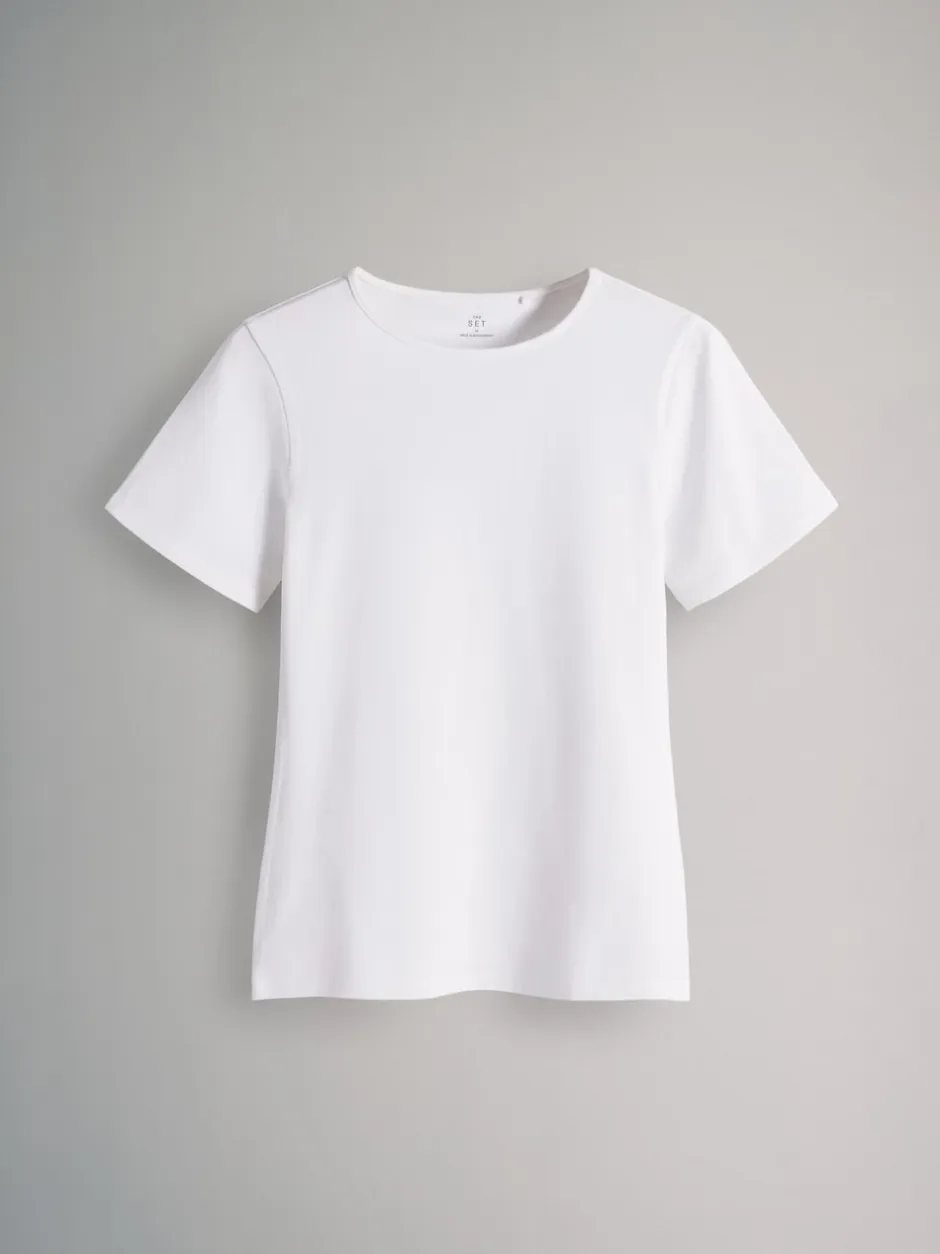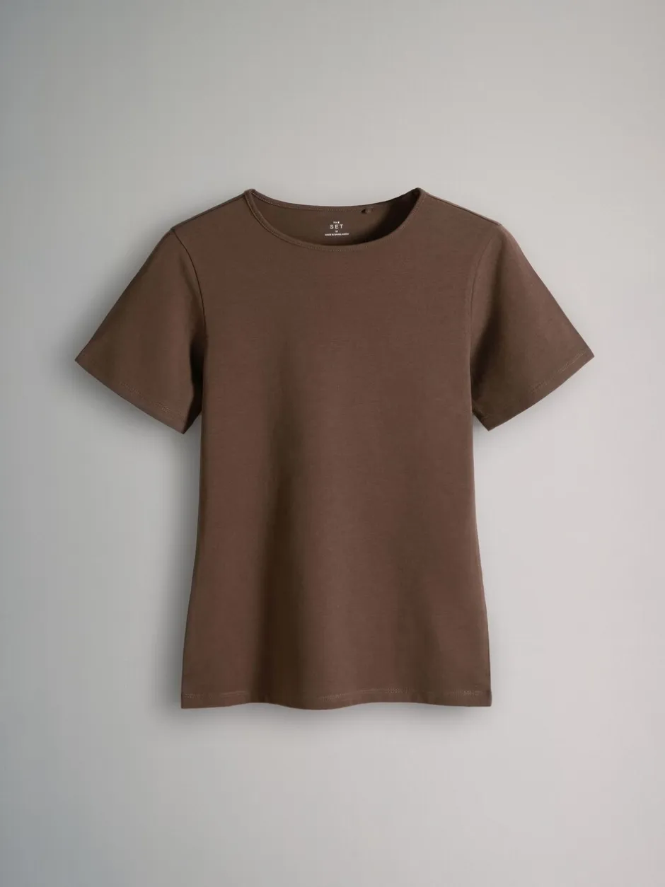 The Set Noir/marron/neutre/nude/blanc – lot de 5 t-shirts ajustés à col ras du cou à manches courtes Online