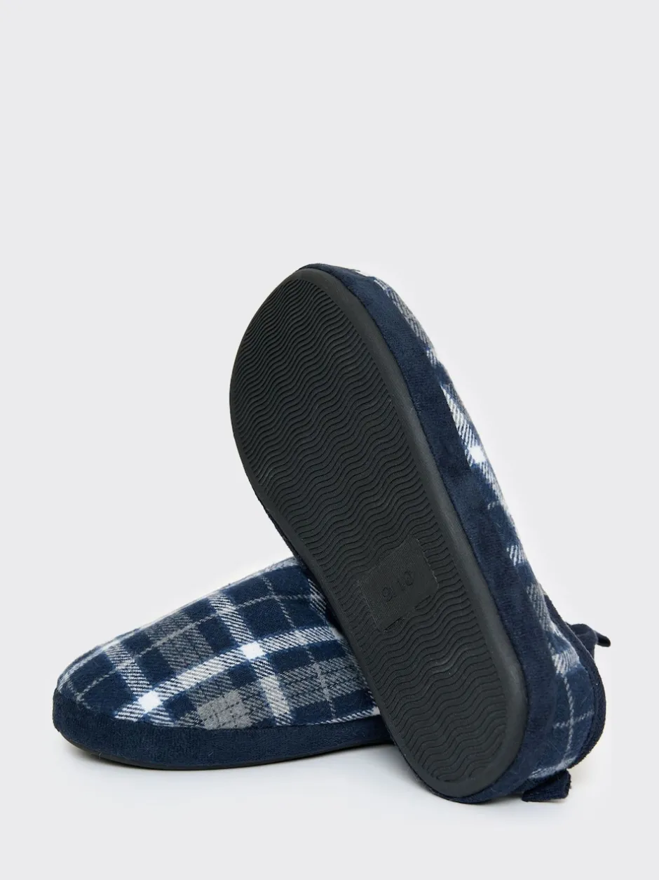 Threadbare Bleu – Chaussons mules doublés de fausse fourrure à carreaux Outlet
