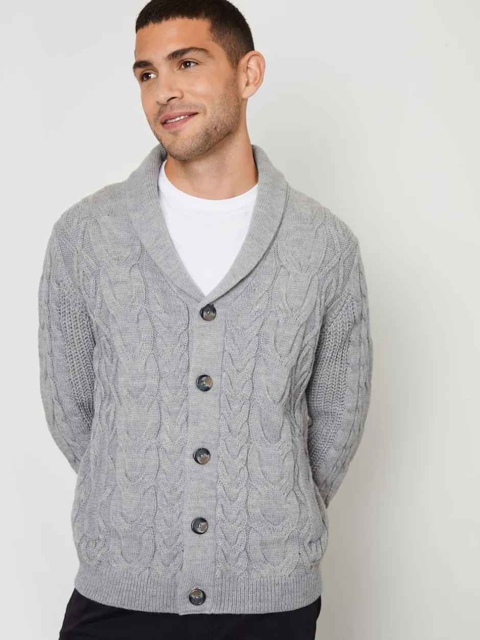 Threadbare Gris – Cable Knit Shawl Collar Cardigan With Wool Best