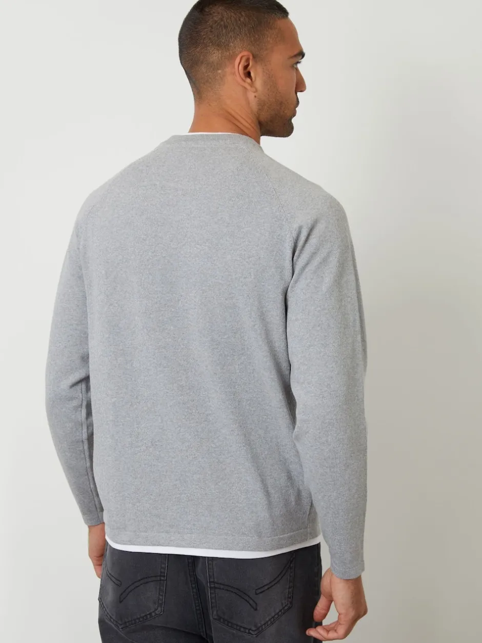 Threadbare Gris – Pull Mock T-shirt texturé en maille à col rond Hot
