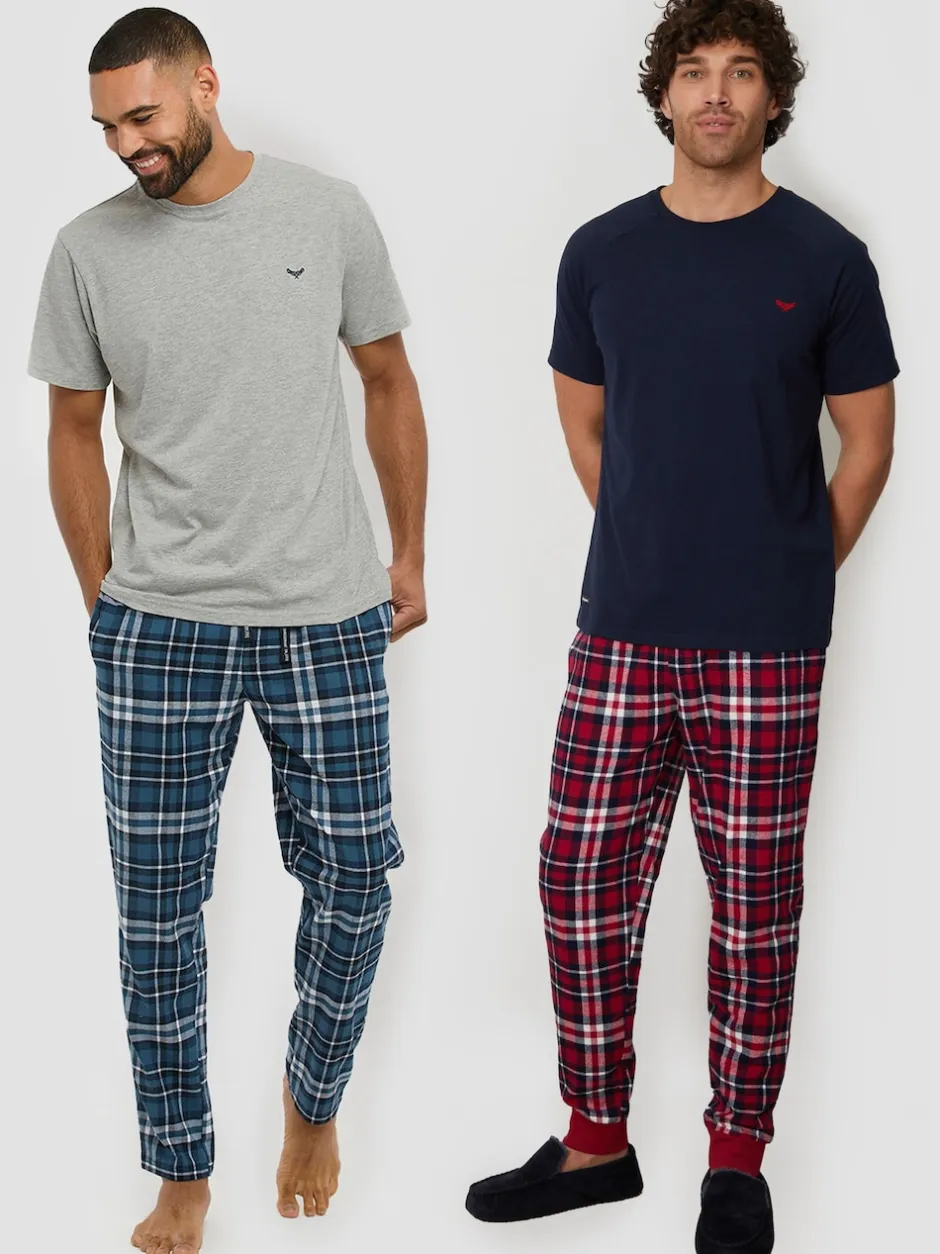 Threadbare Lot de 2 Ensemble Pyjamas T-shirt Manches courtes et Pantalons Carreaux Outlet