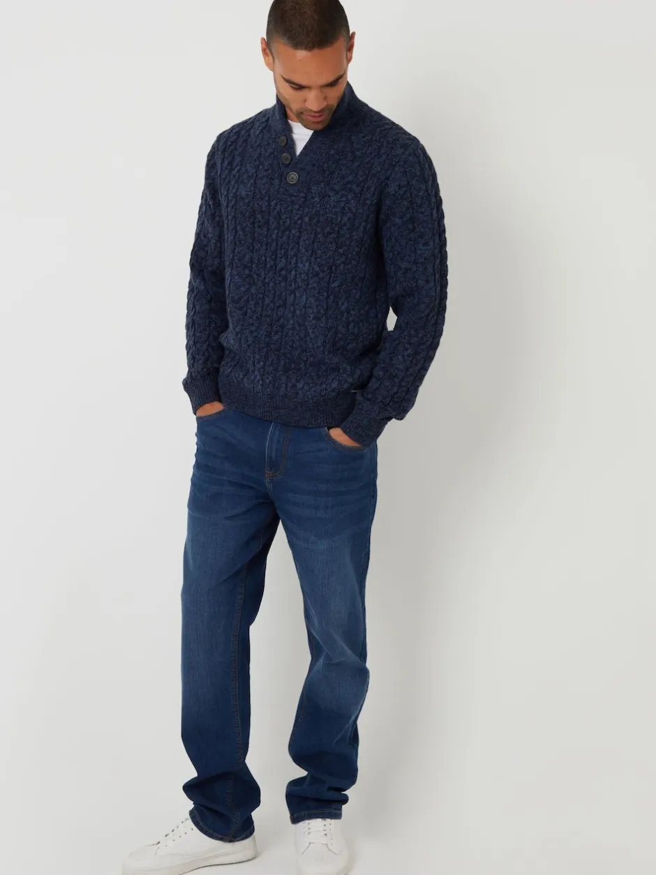 Threadbare marine – Pull en maille torsadée à Col cheminée Hot