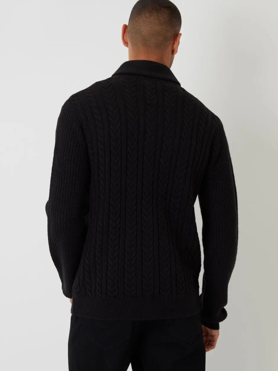 Threadbare Noir – Cable Knit Shawl Collar Cardigan With Wool Sale