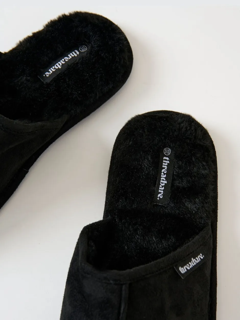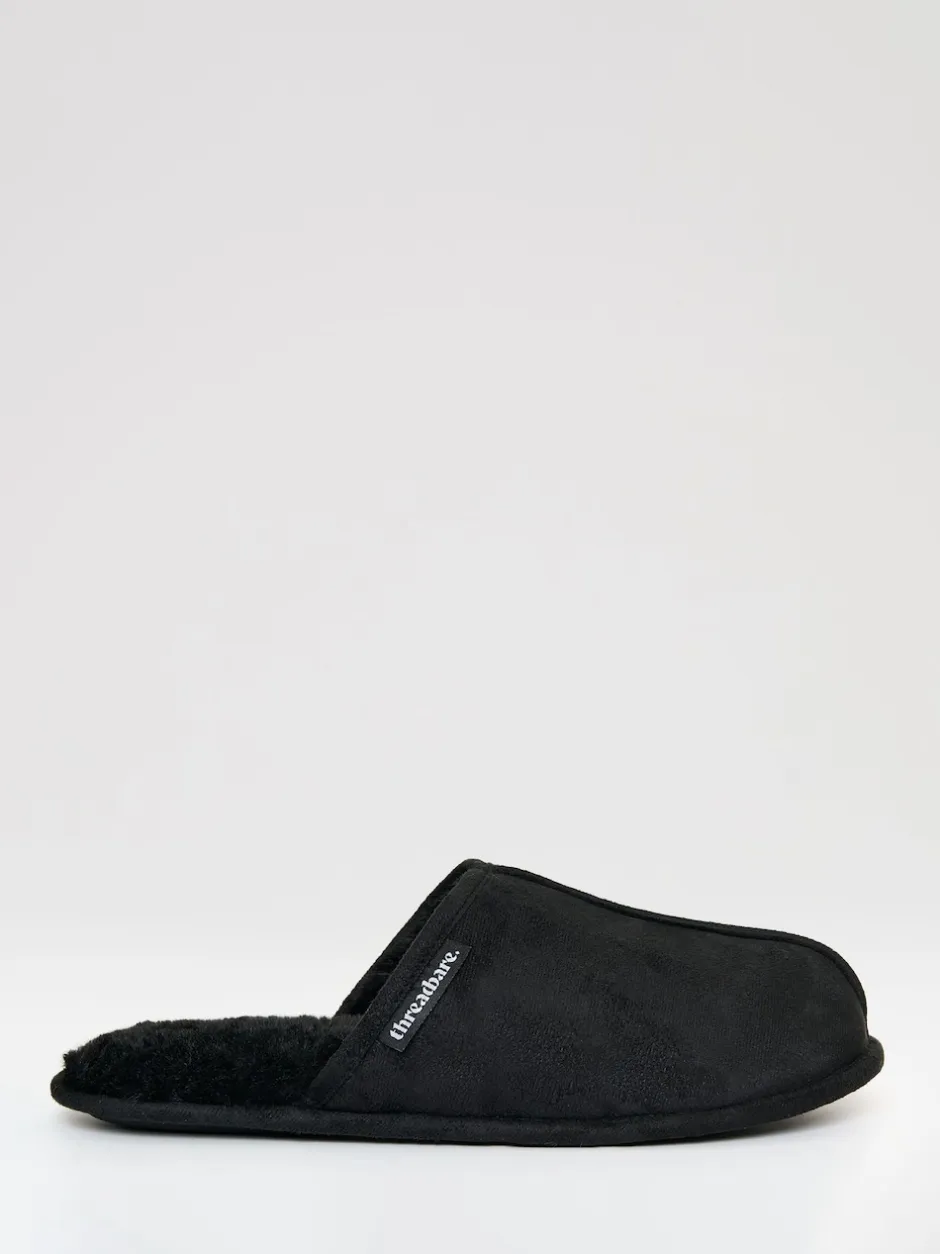 Threadbare Noir – chaussons mules doublés de fausse fourrure Clearance