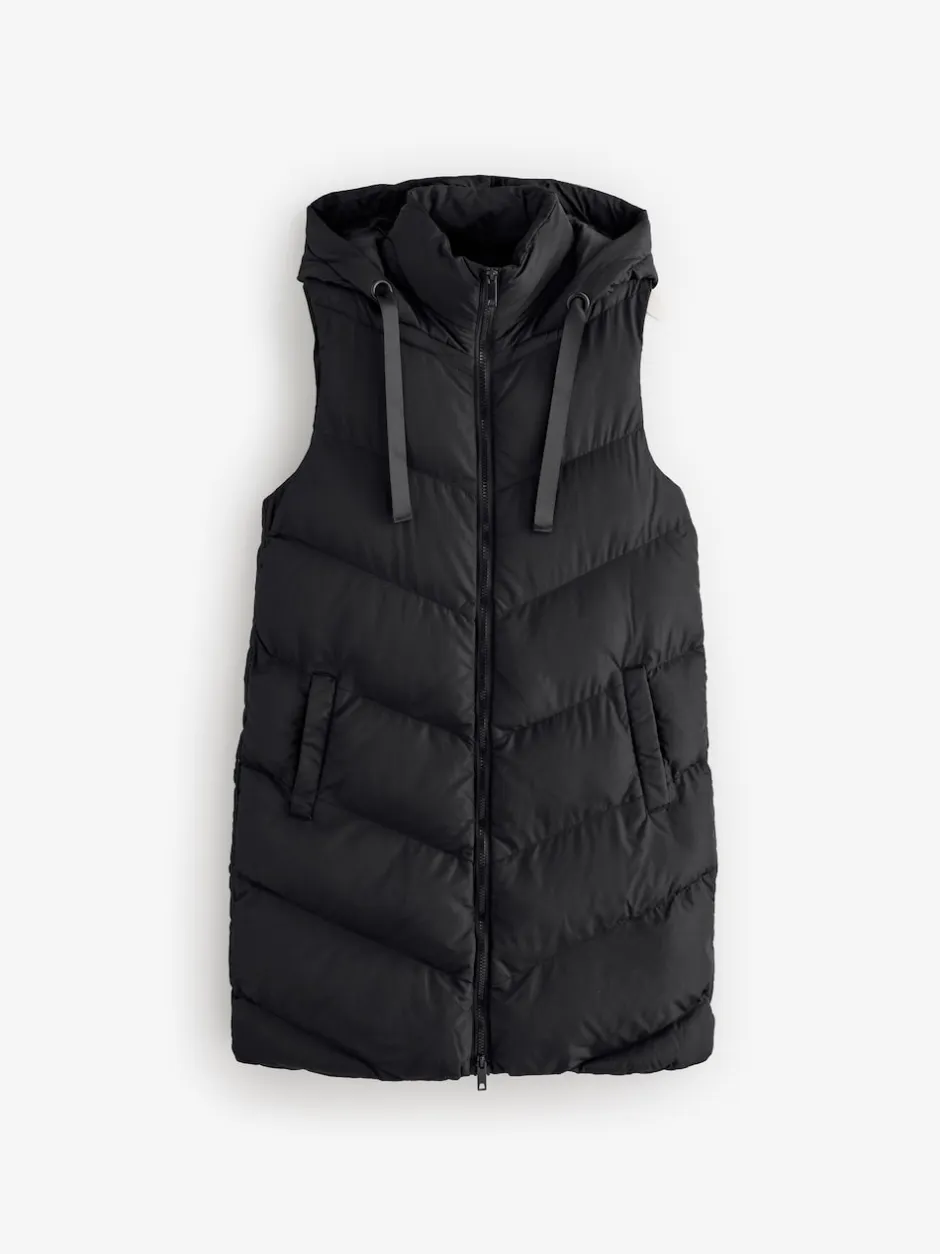 Threadbare Noir – Veste matelassée sans manches coupe longue New