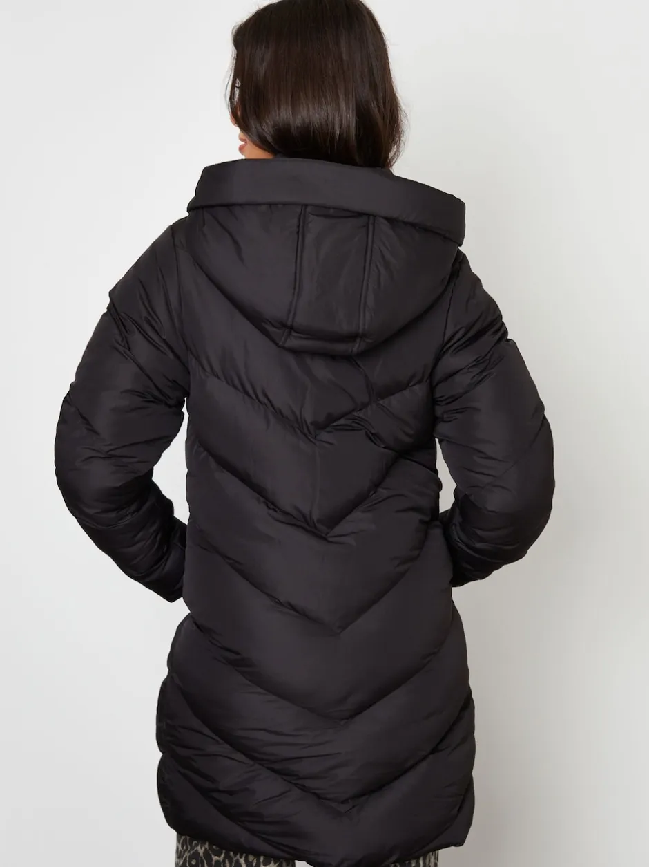 Threadbare Noir – veste mi-longue rembourrée à capuche