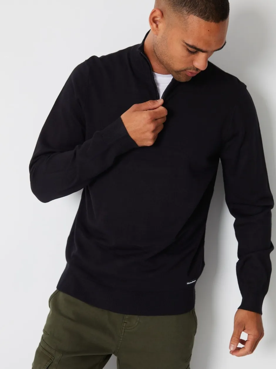 Threadbare – – Pull tricoté avec fermeture éclair à quart de tour et enton Noir Hot