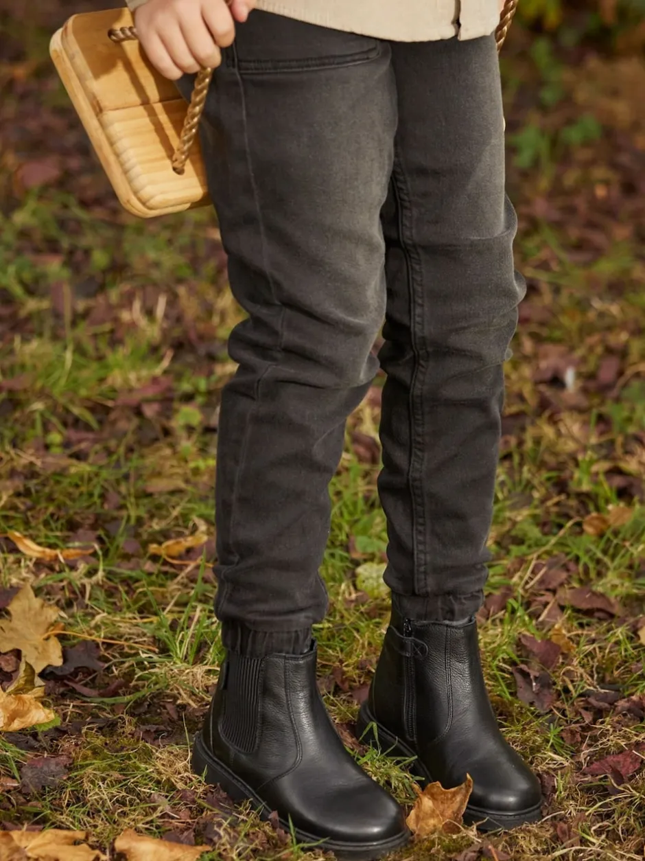 Toezone Lily Filles Leather Gusset and Zip Ankle Noir Bottes Discount