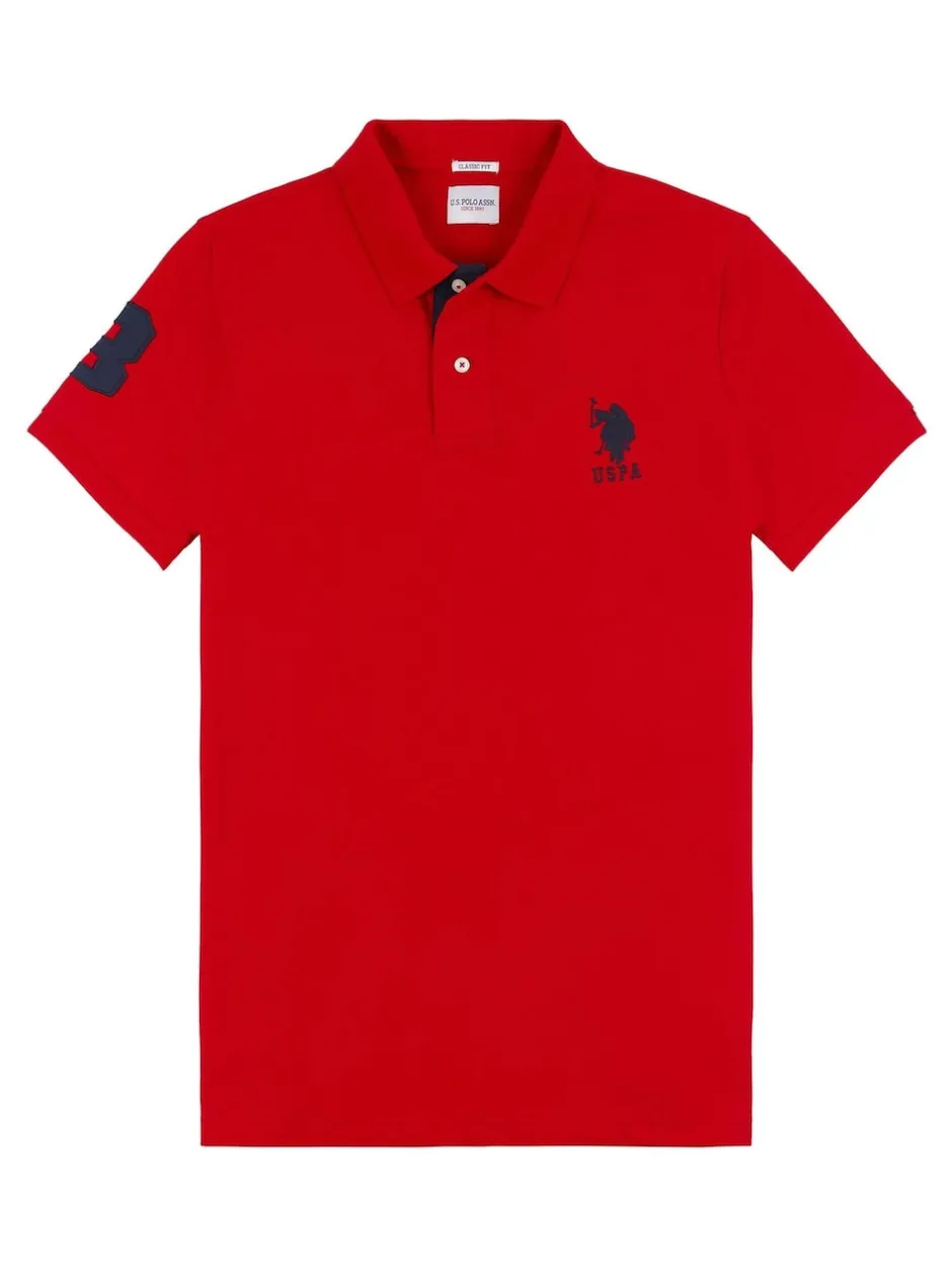 U.S. Polo Assn – . Coupe classique Mens Player 3 Pique 100% Cotton Polos Rouge Sale