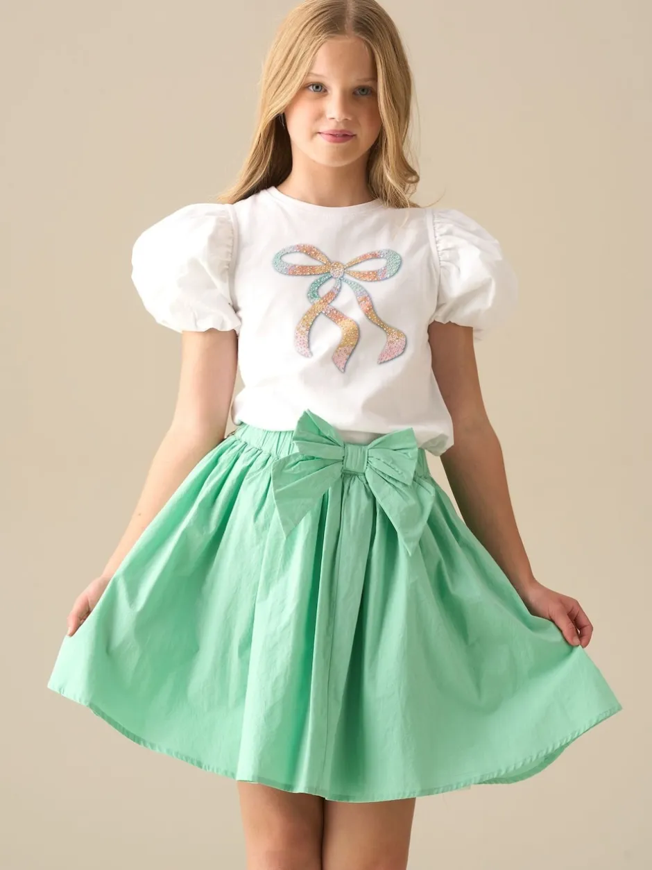 Angel & Rocket Chemisier Elodie à nœud, sequins et manches bouffantes Discount