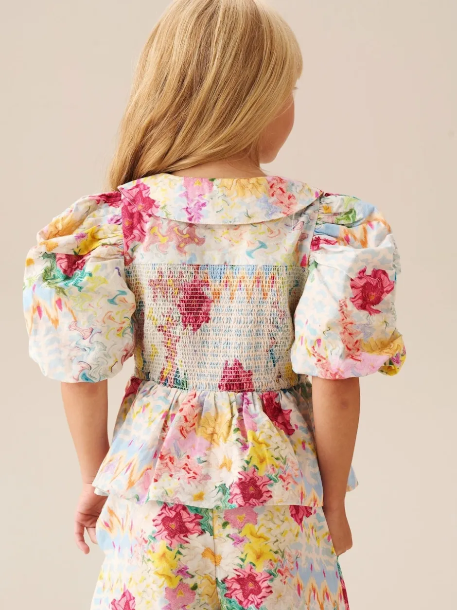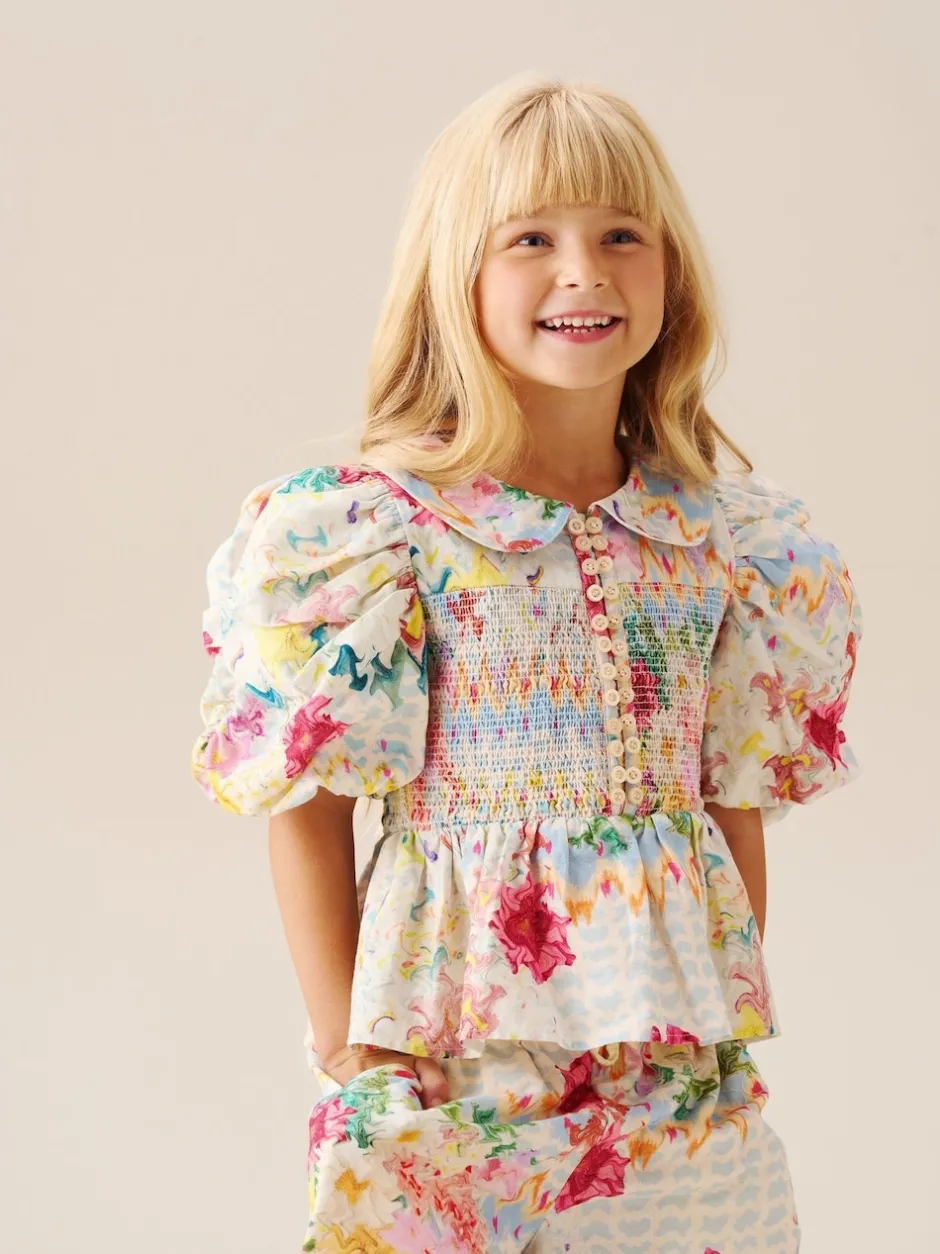 Angel & Rocket Chemisier froncé Orla multicolore à col Claudine Discount