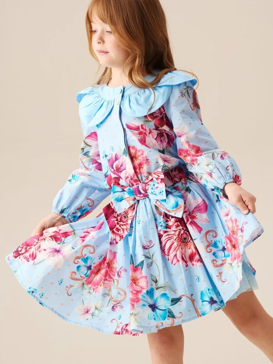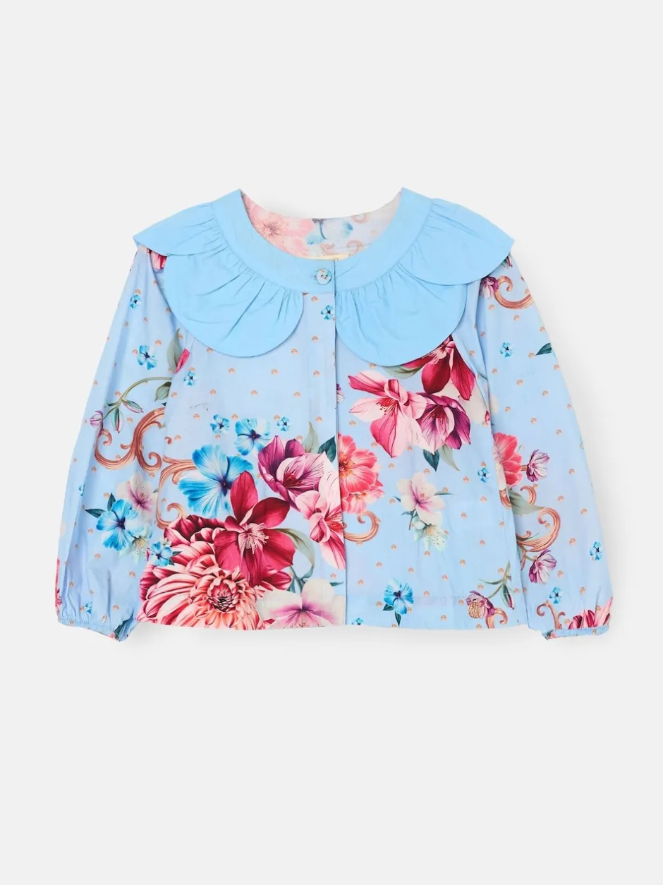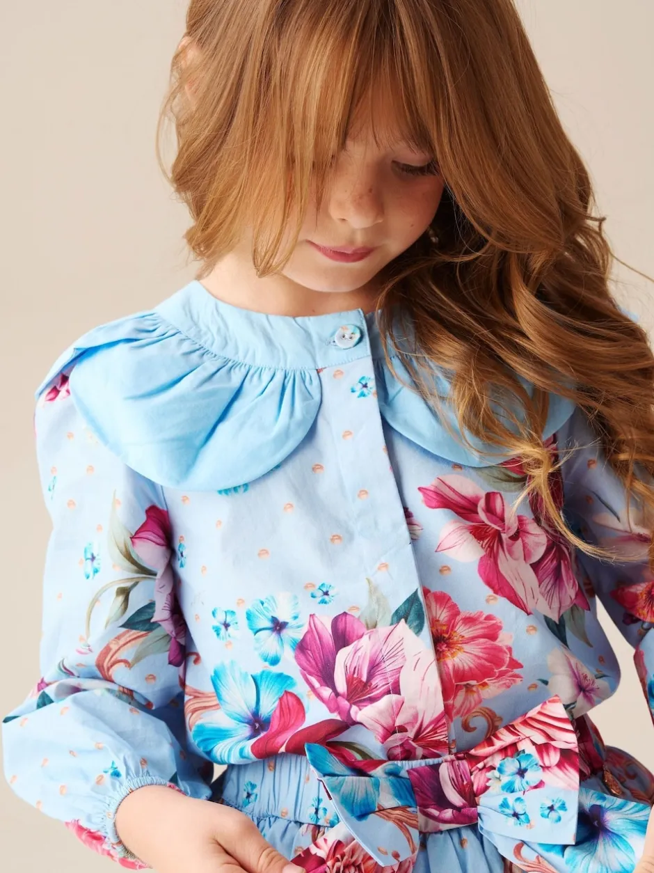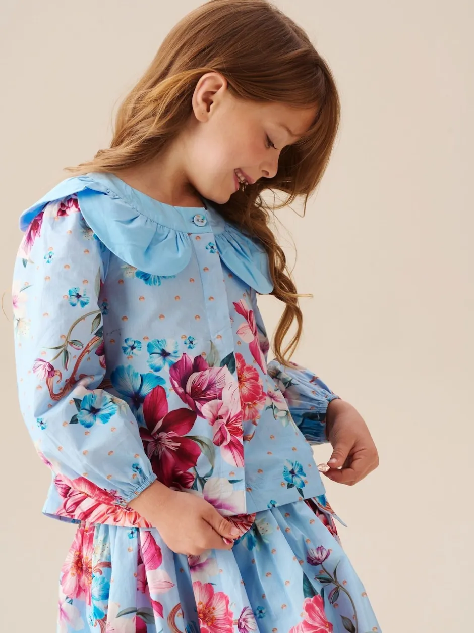 Angel & Rocket Haut Darcy bleu imprimé à col pétale Clearance