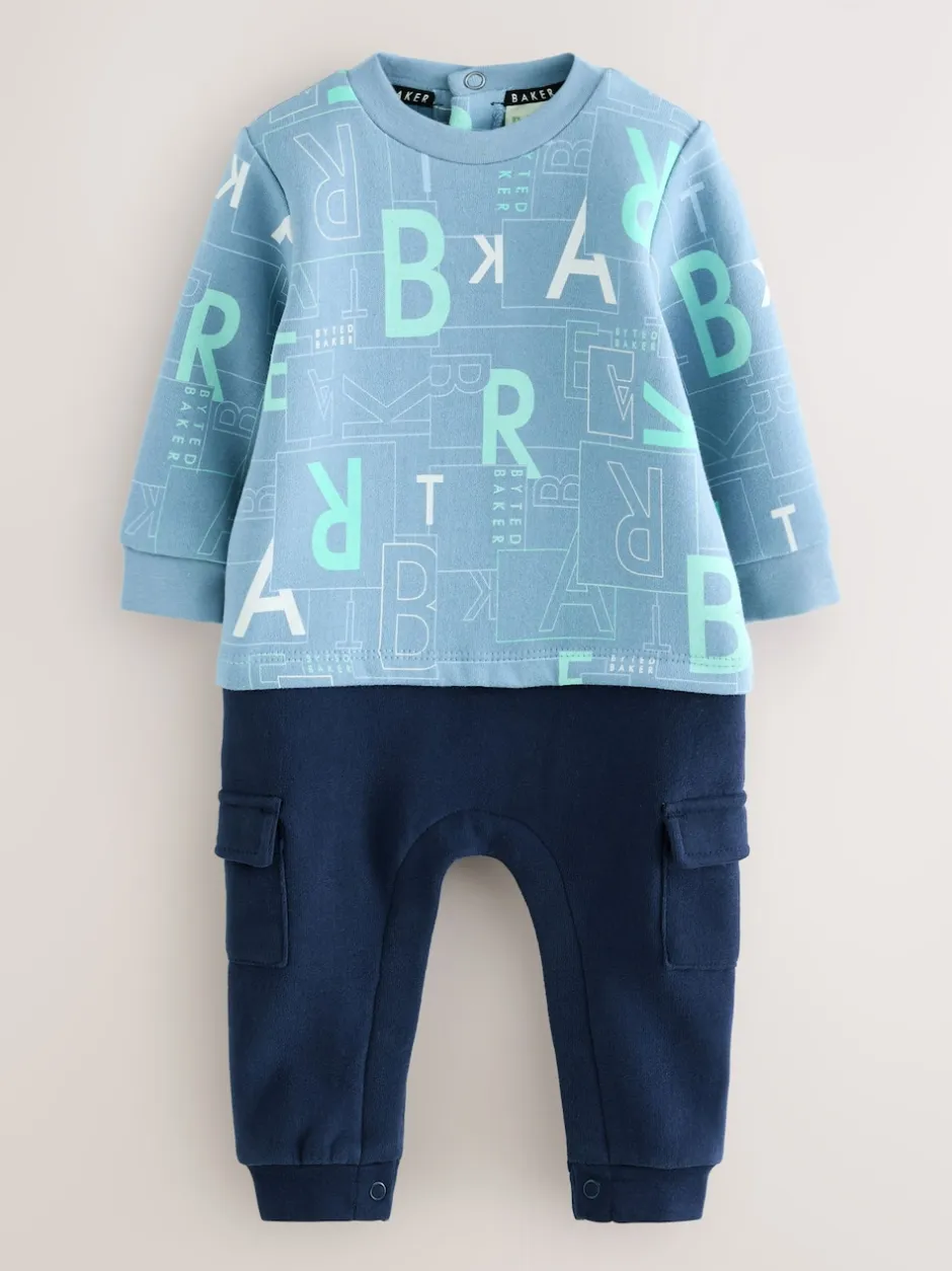 Baker by Ted Baker Bleu – Barboteuse à manches longues imprimée partout New