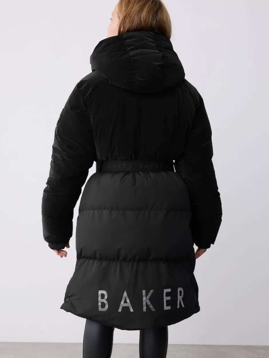 Baker by Ted Baker Parka longue imperméable à ceinture noire rembourrée Discount
