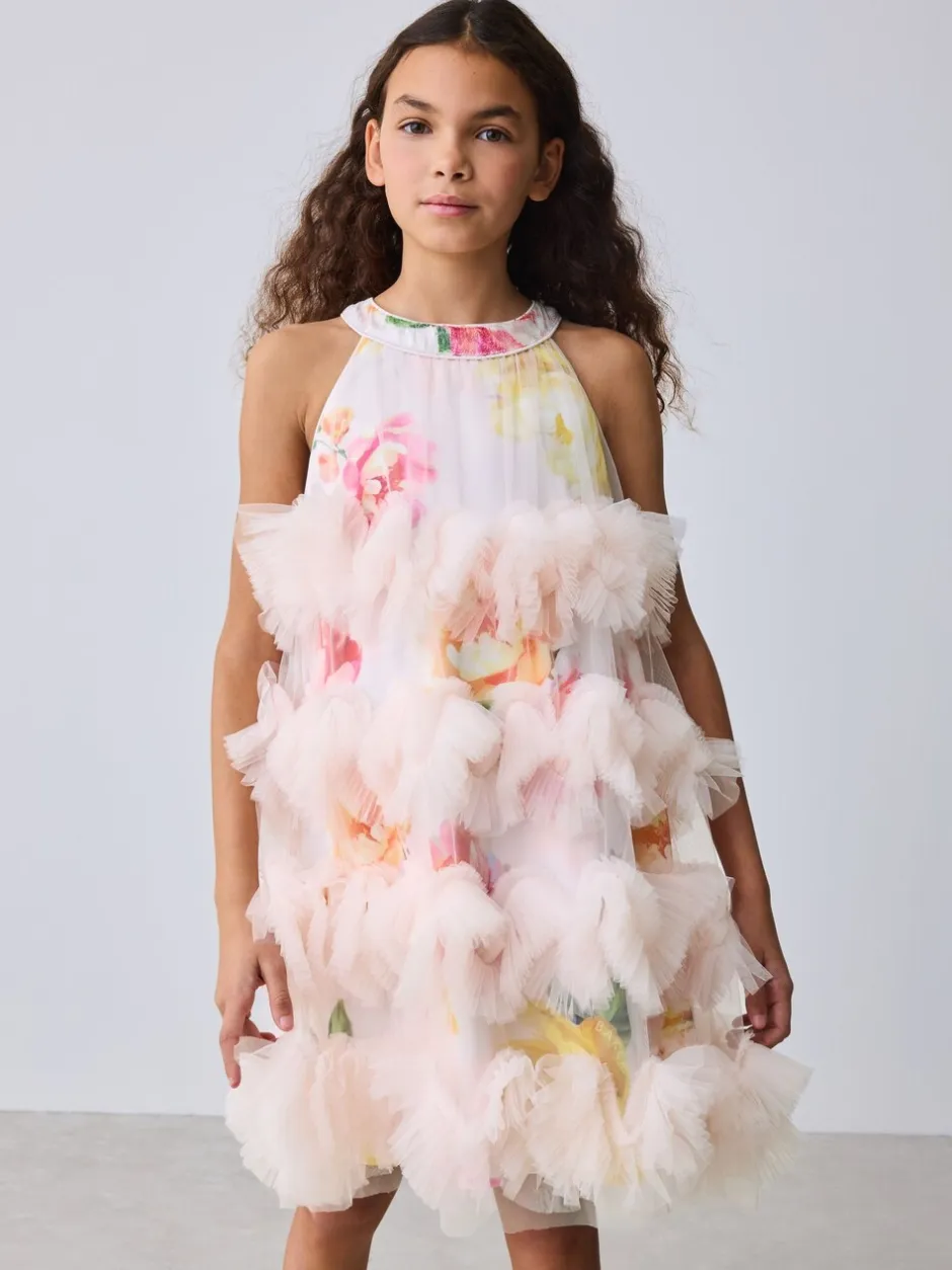 Baker by Ted Baker Robe dos nu rose 3D duveteuse en maille à volants Sale
