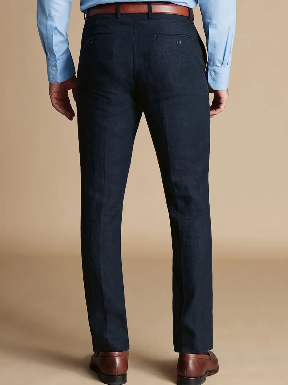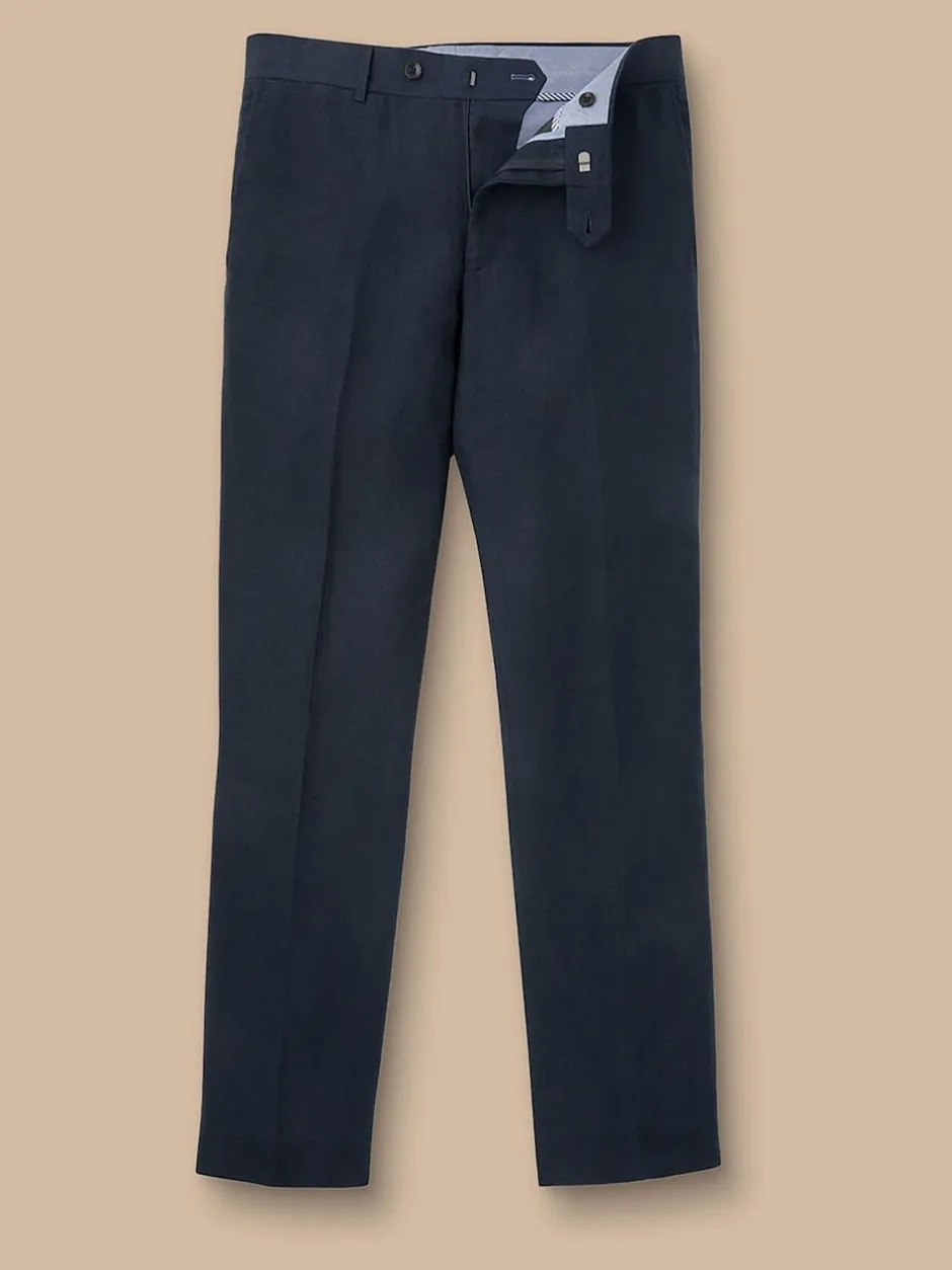 Charles Tyrwhitt Bleu – Coupe ajustée 100% Lin Pantalons Discount