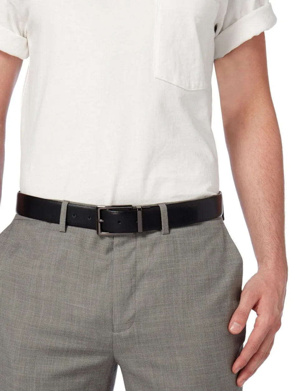 Dune London Noir – Opra Ceinture en cuir réversible Sale