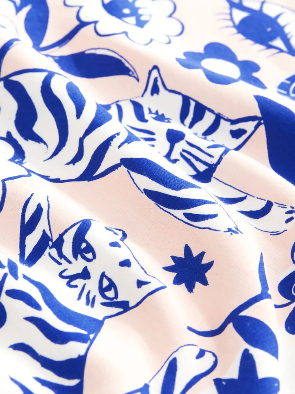 Love & Roses Bleu cobalt – Chemisier manches longues à nœud lavallière New