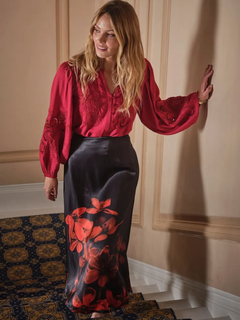 Love & Roses Chemisier brodé à manches longues à col rond Hot