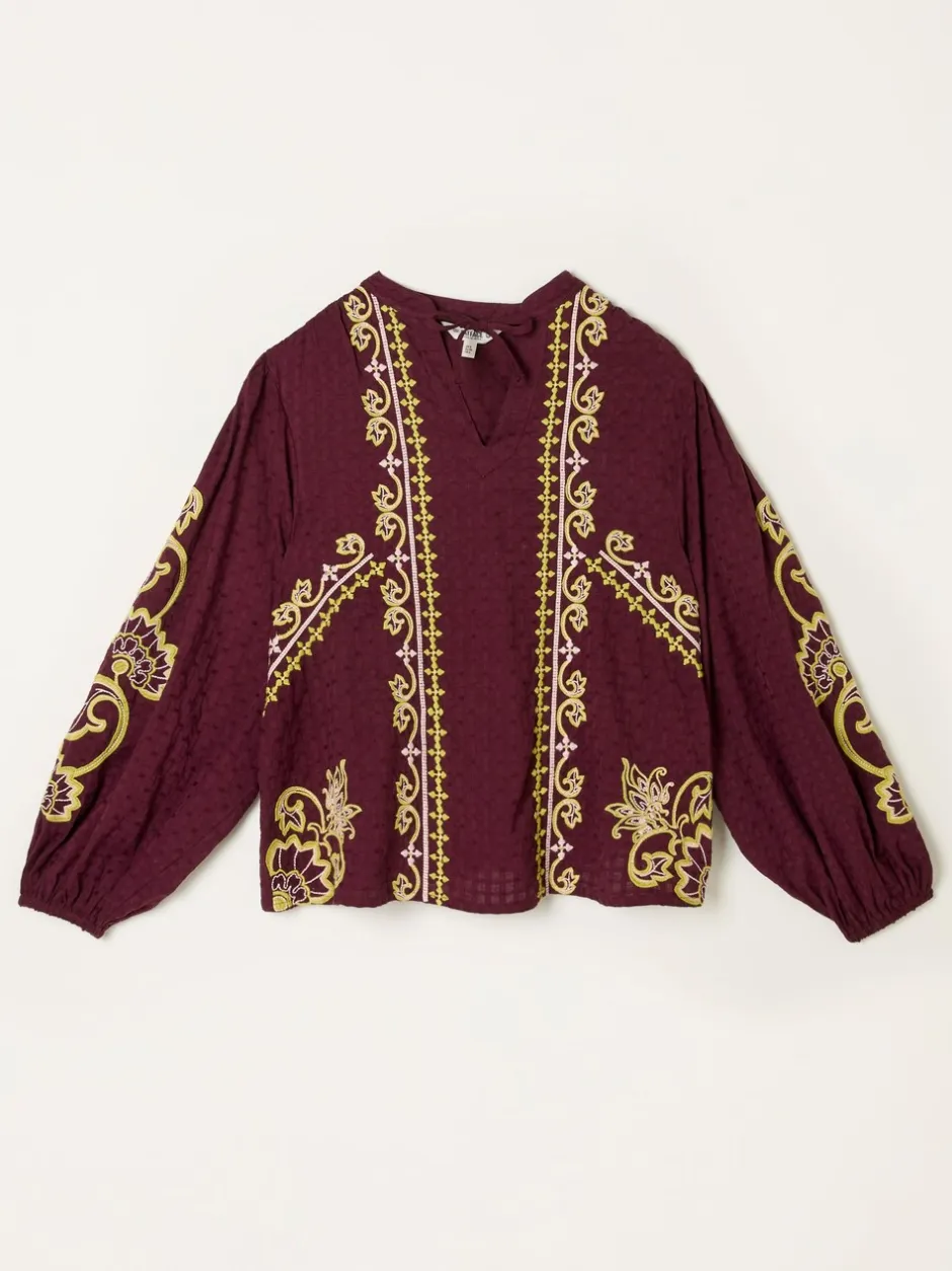 Fat Face Rouge bordeaux – Chemisier FatFace Garratt brodé à col en V Clearance