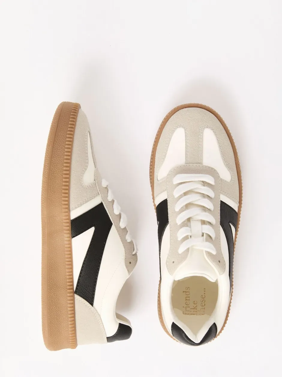 Friends Like These – Baskets de sport à lacets rétro à semelle en gomme Blanc noir Clearance