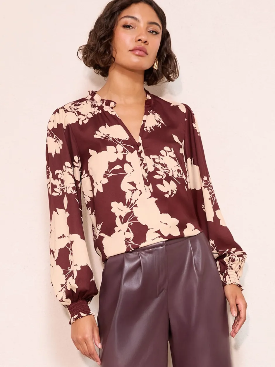 Friends Like These Fleurs de Bourgogne – Chemisier manches longues à col en V boutonné sur le devant