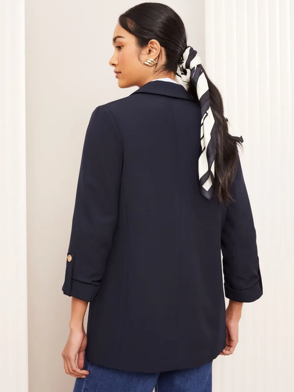 Friends Like These marine – Bord à bord habillé Détail des manches Blazer Hot