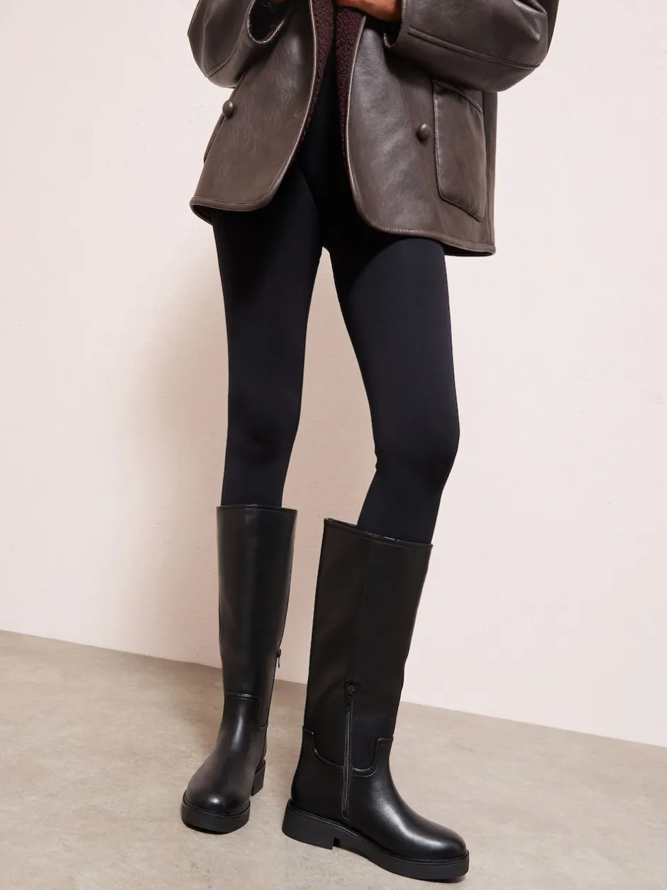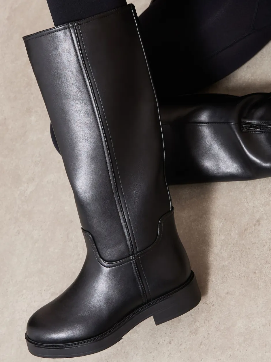 Friends Like These Noir – Bottes d’équitation longues décontractées plates à enfiler en similicuir New