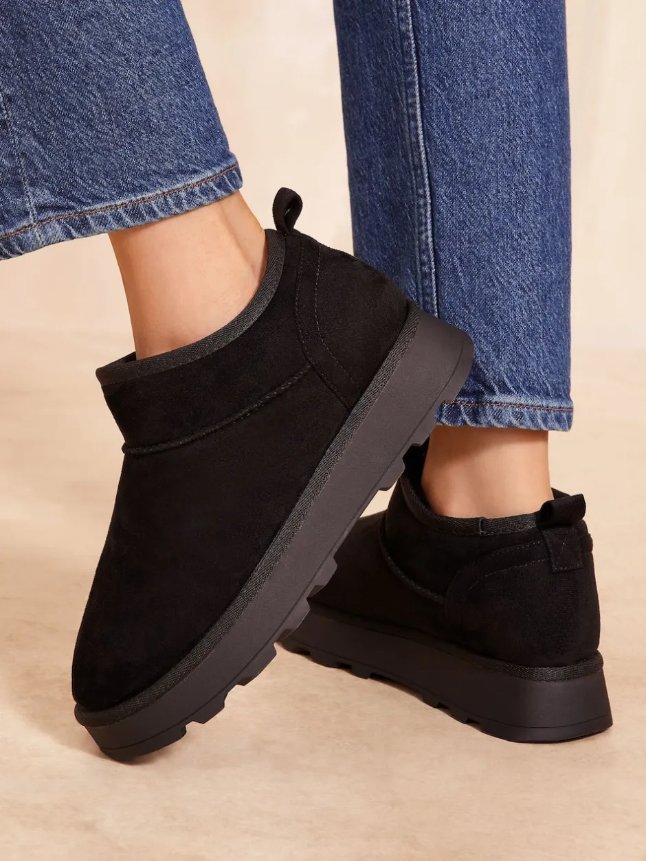 Friends Like These Noir – Bottes en daim douillette doublées de fausse fourrure Discount