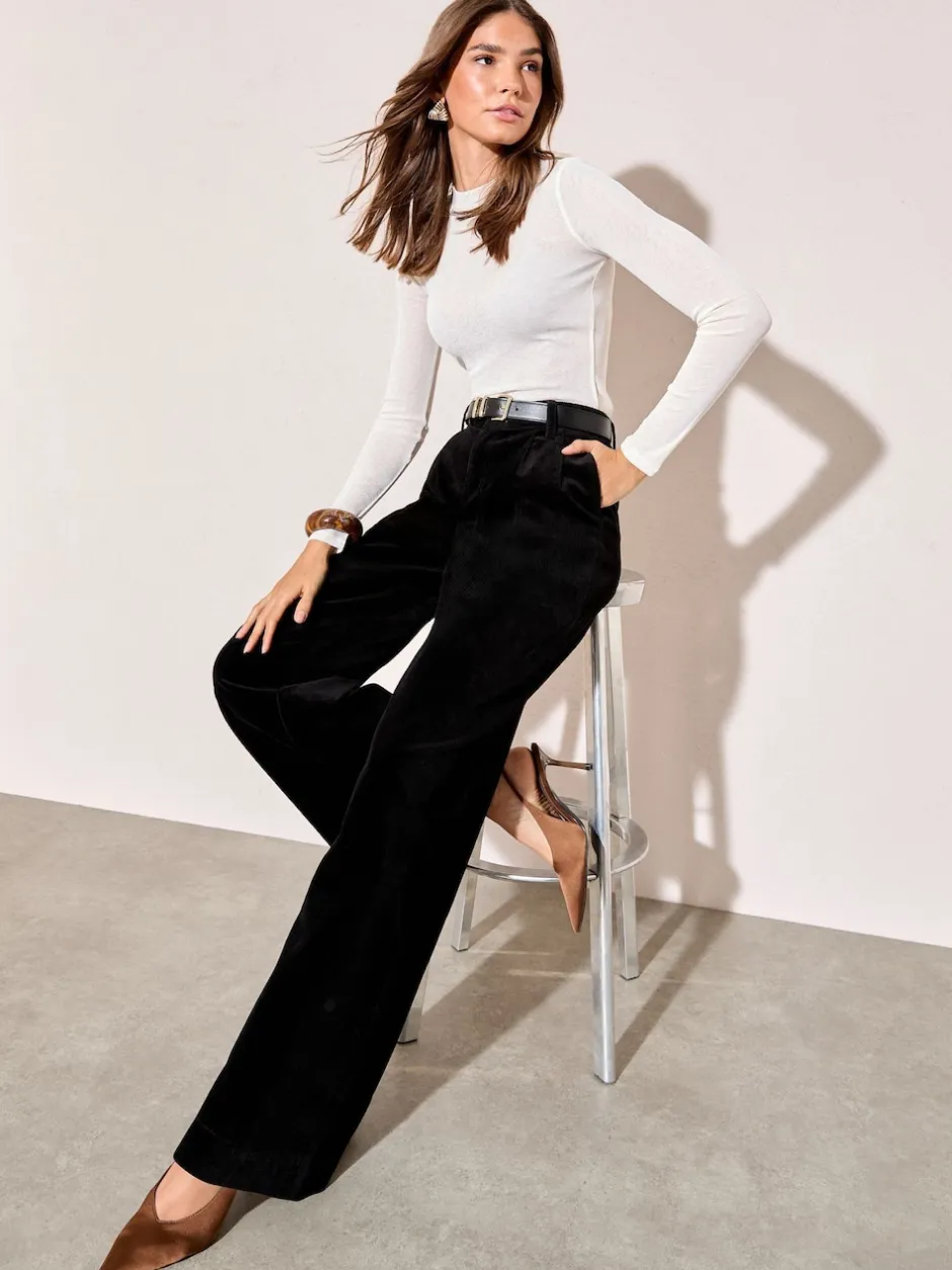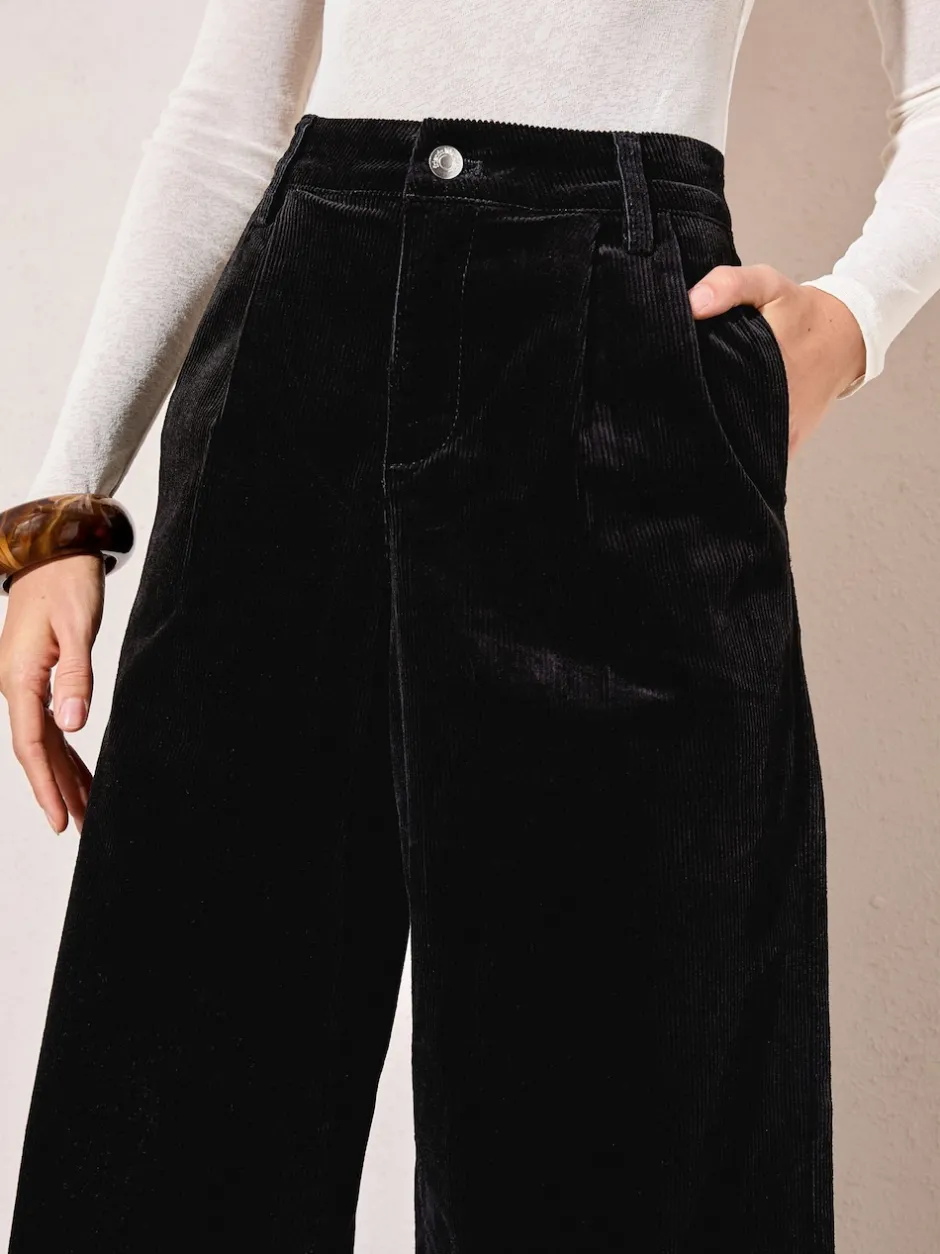Friends Like These Noir – Pantalons amples plissé sur le devant en velours côtelé Online