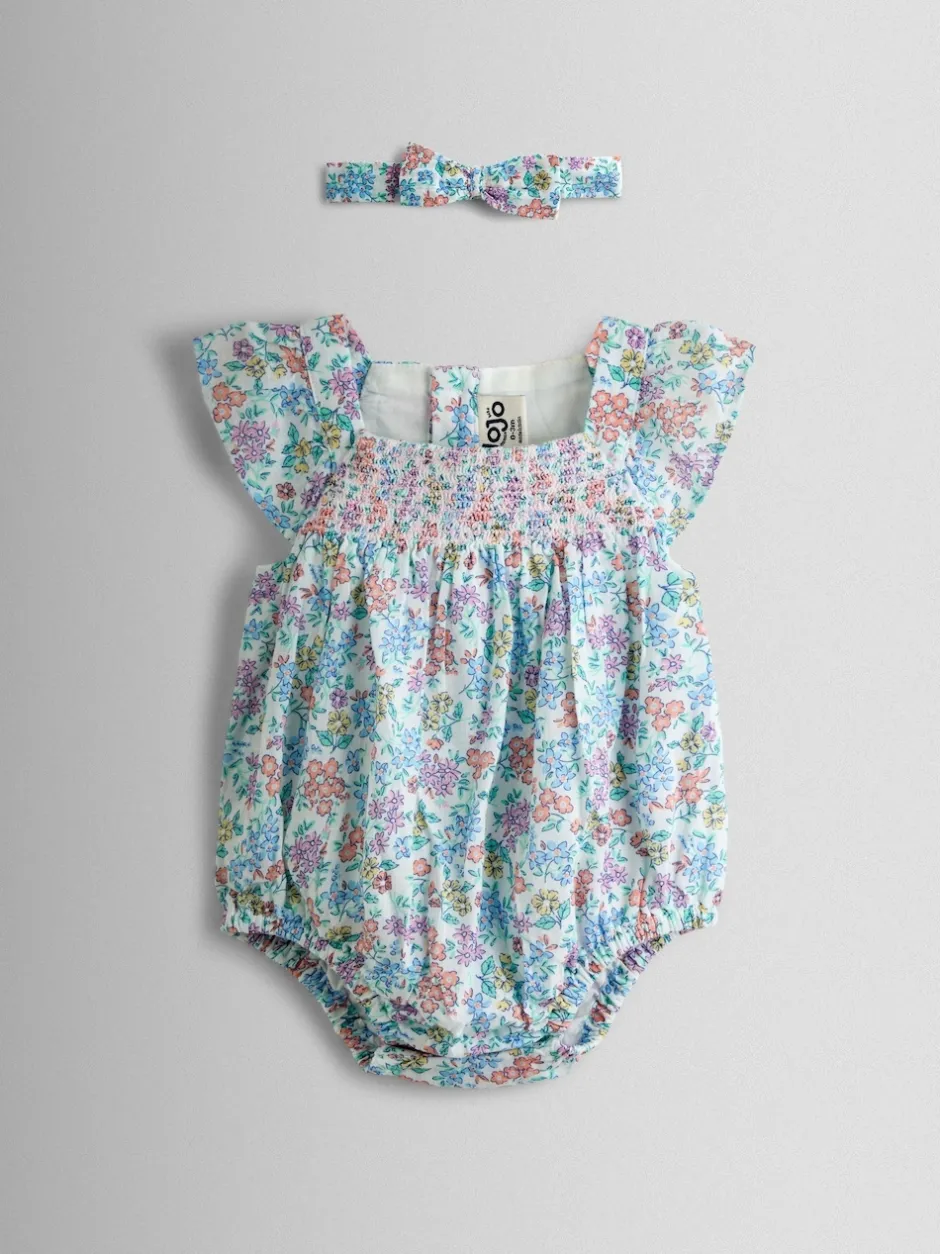 Jojo Maman Bébé Ensemble barboteuse et bandeau à fleurs smockées Online