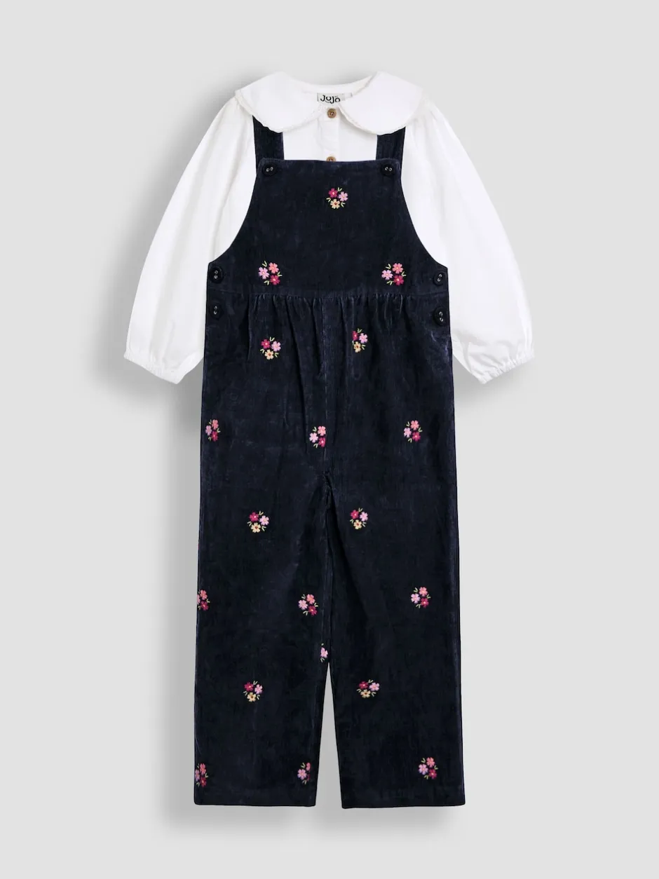 Jojo Maman Bébé Ensemble salopette et chemisier en velours côtelé brodé New