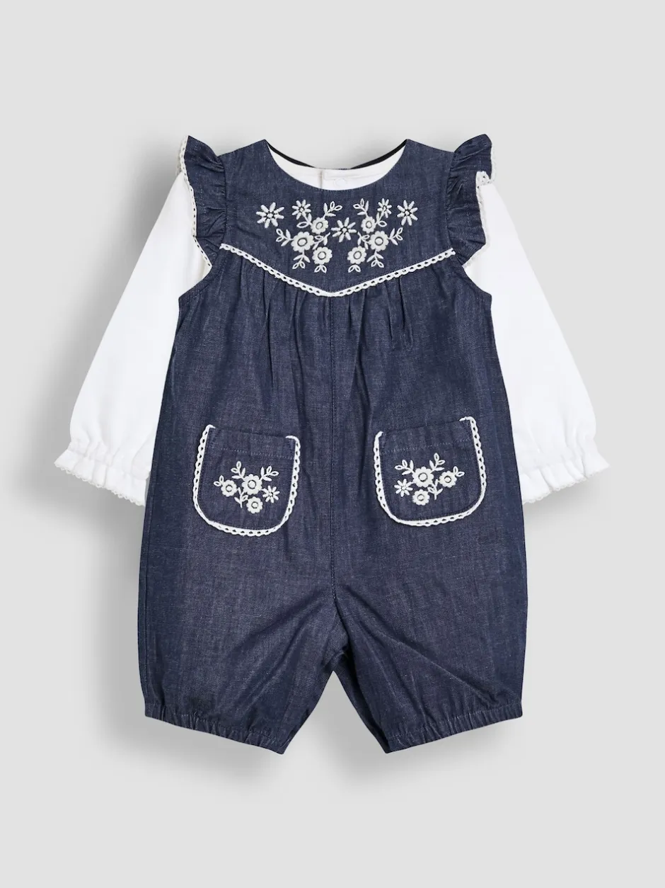 Jojo Maman Bébé Ensemble salopette et haut en chambray brodé Discount
