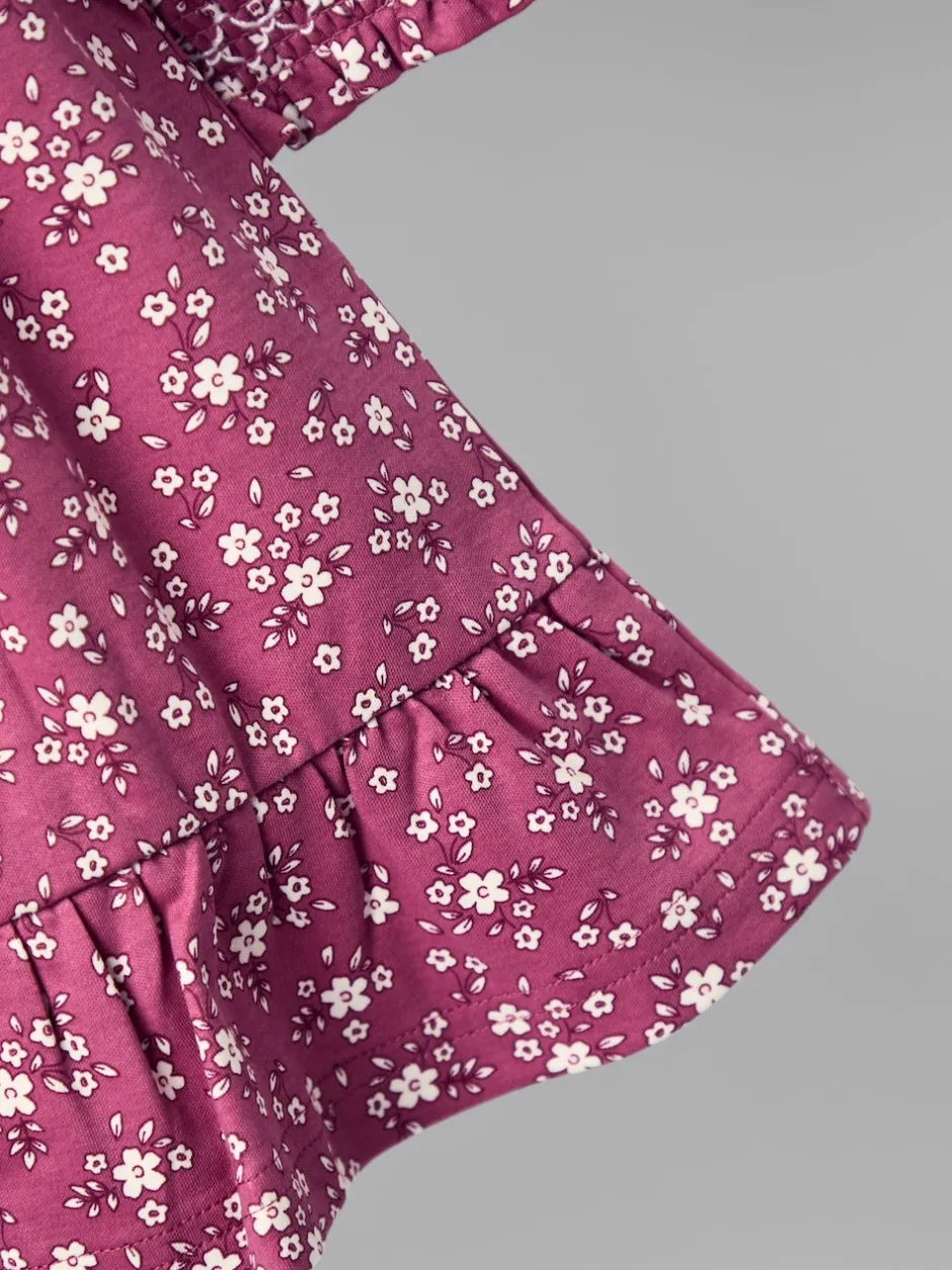 Jojo Maman Bébé Floral rose sombre – Robe en jersey smockée avec col Broderie New