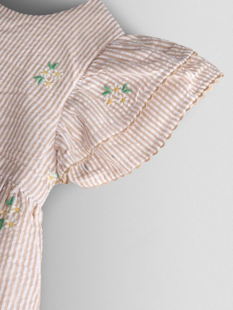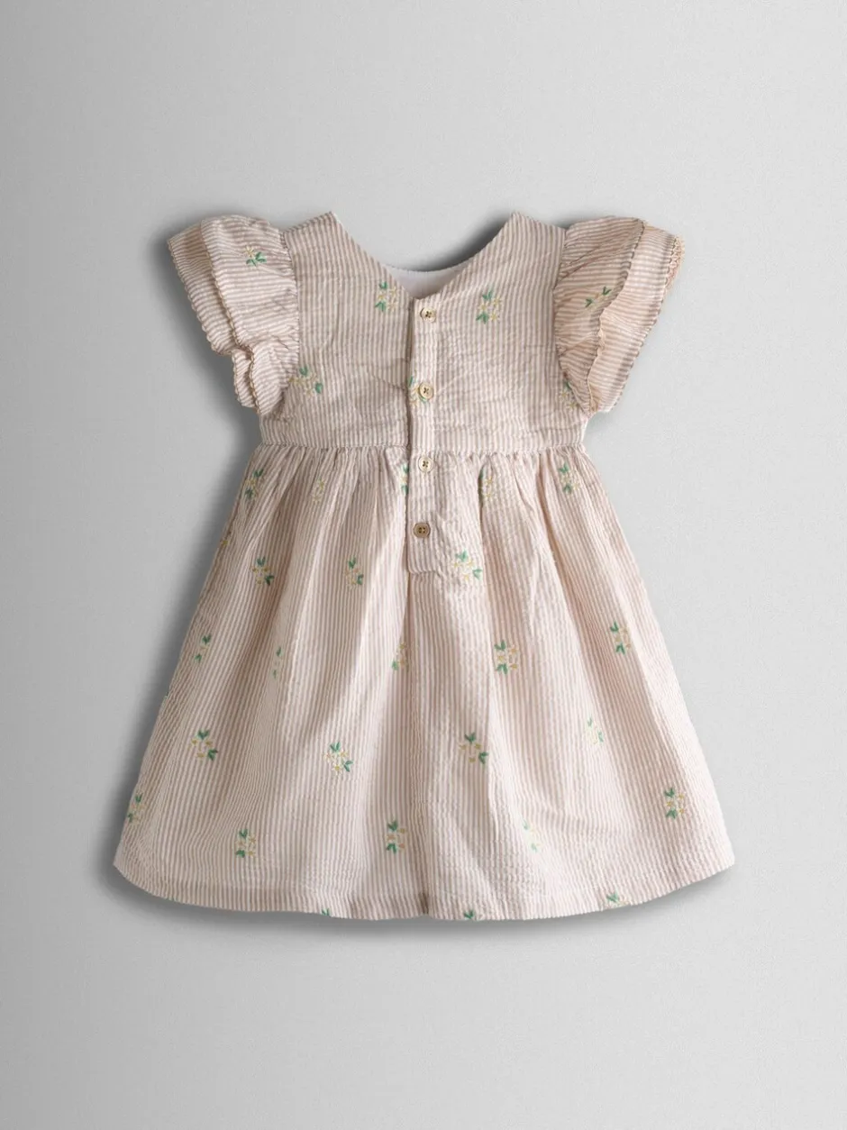 Jojo Maman Bébé Rayures Nature – Robe Fleuri Brodée à manches à volants Outlet