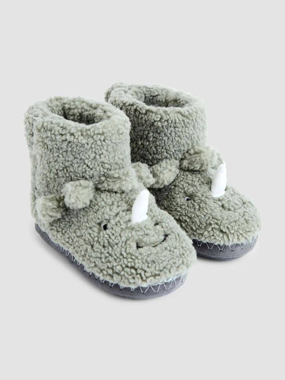 Jojo Maman Bébé Vert avec dinosaure – Chaussons bottes en peluche