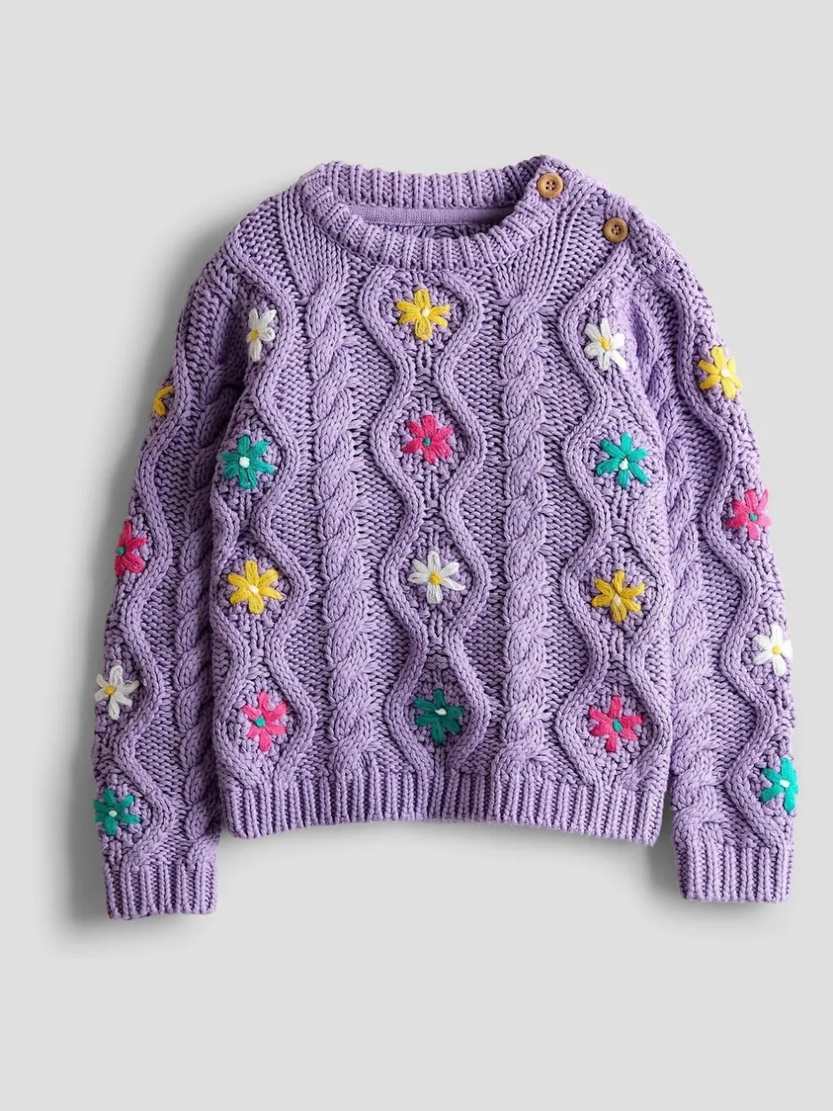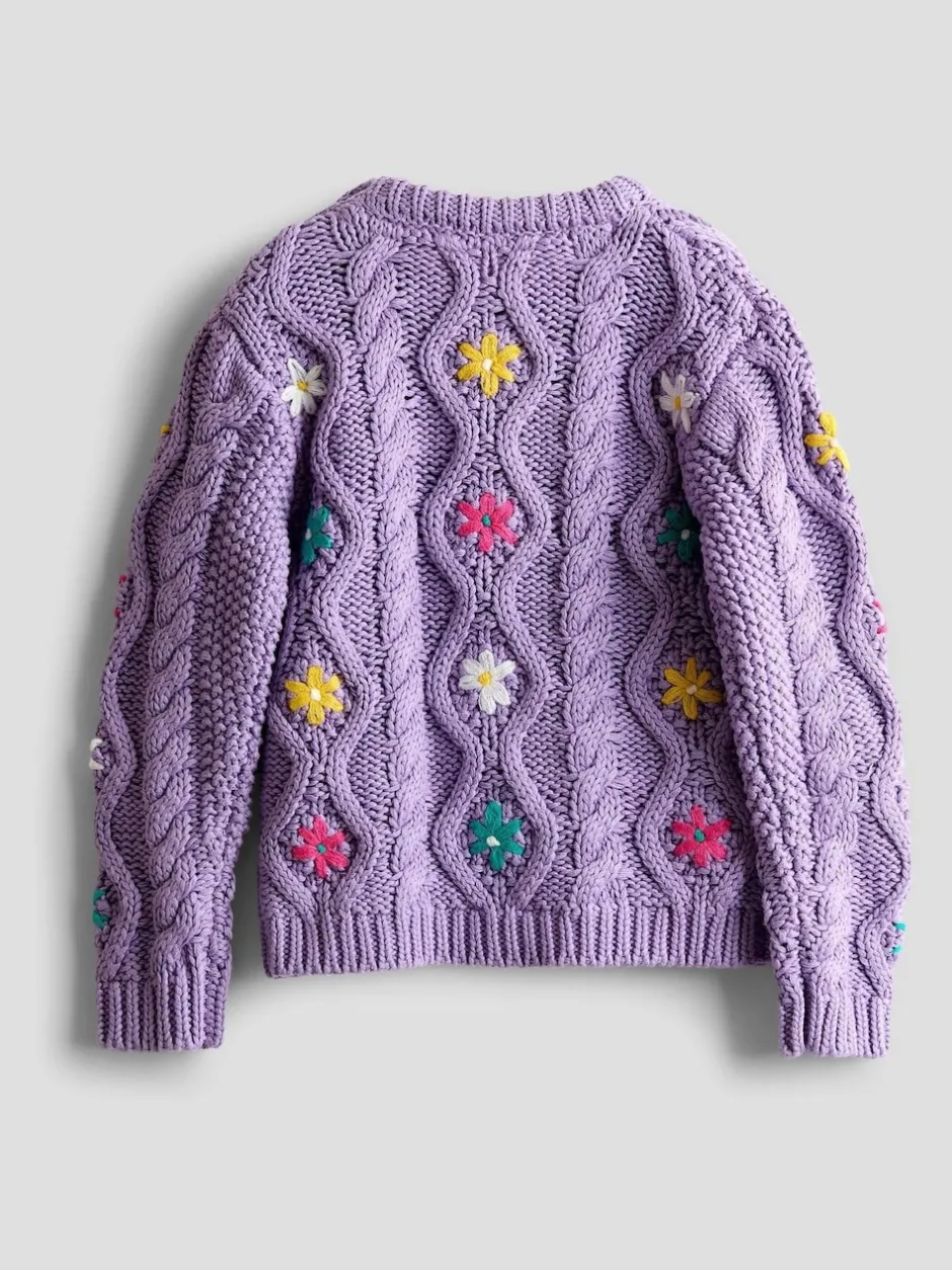 Jojo Maman Bébé Violet lilas – Pull brodé en maille épaisse New