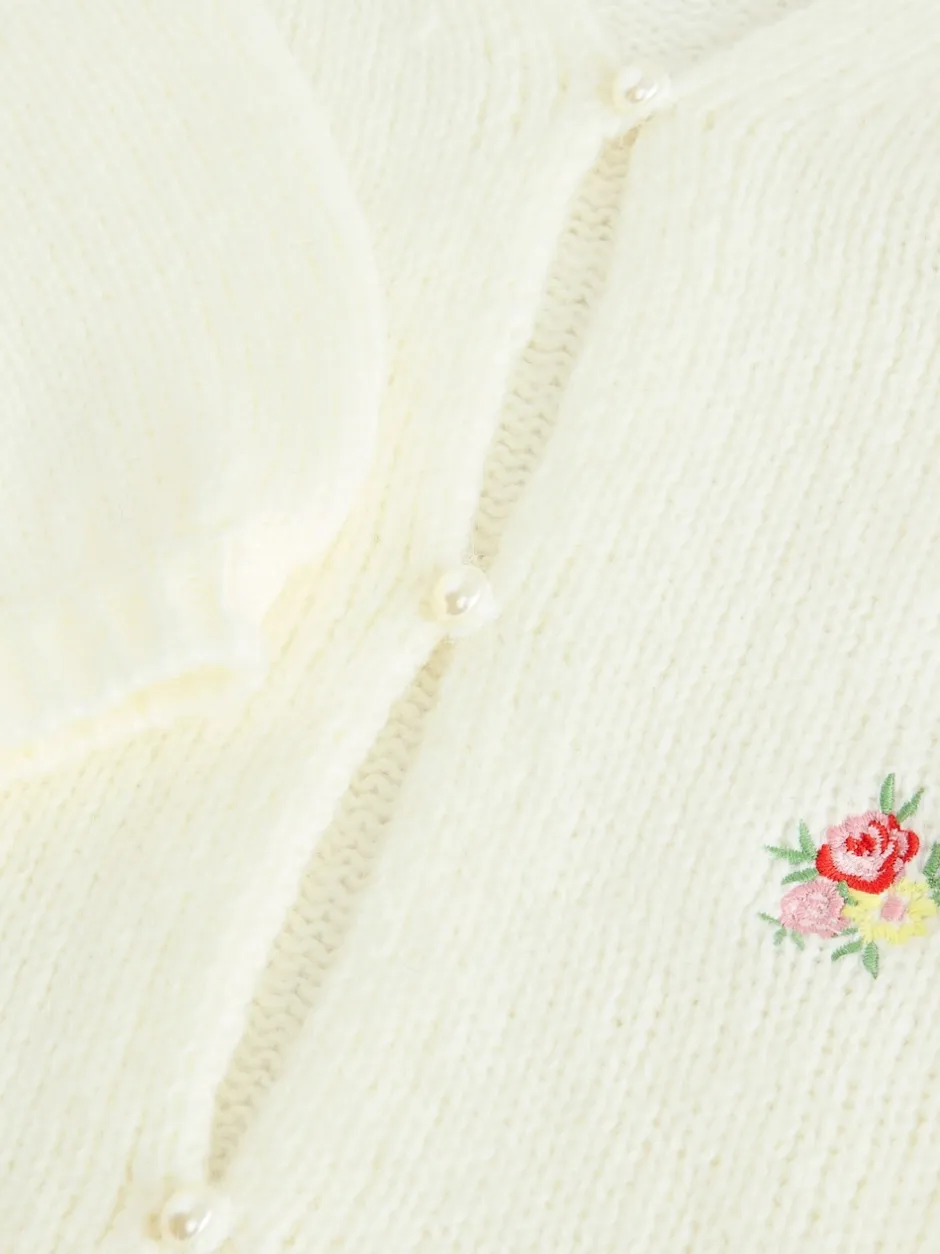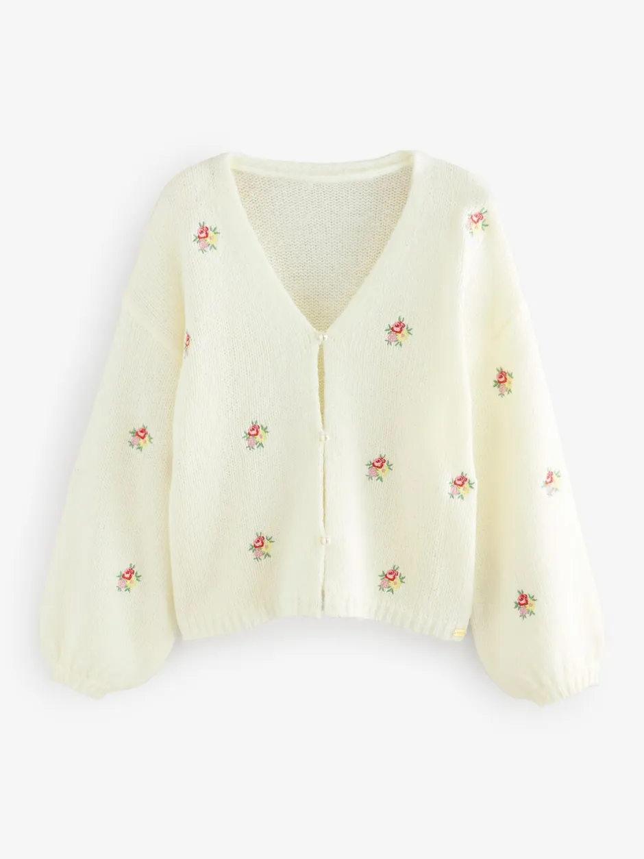 Laura Ashley écru – Cardigan Fleuri Brodé New