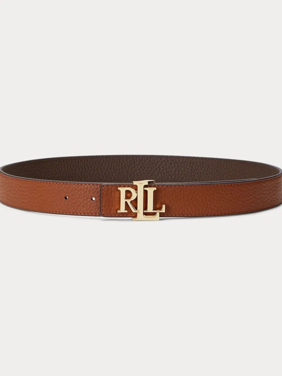 Lauren Ralph Lauren Lauren Fauve/Marron foncé – 2.5cm Ceinture réversible en cuir galet à logo Sale