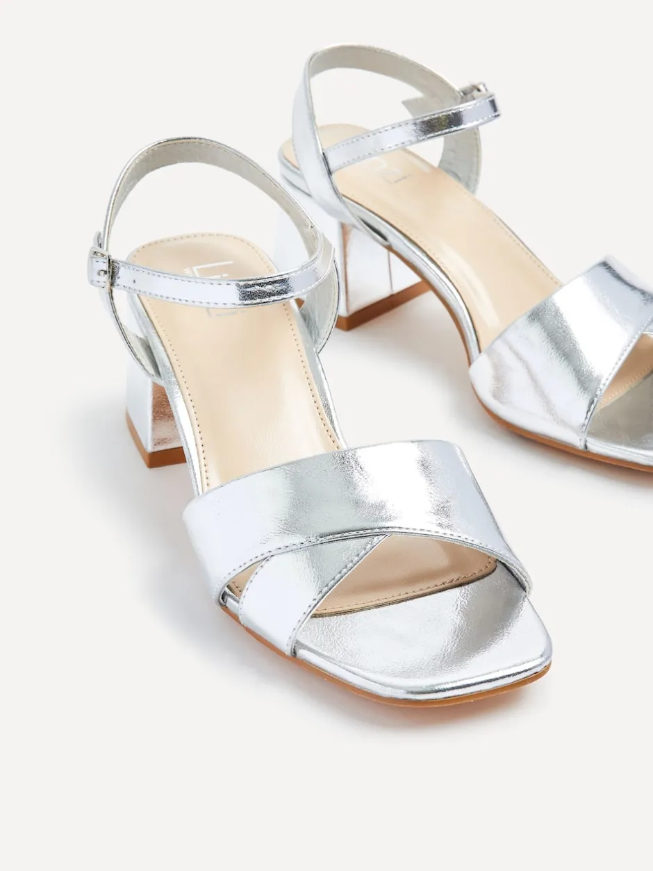 Linzi Argent – Sandales à talons larges Vivian avec bandoulière avant croisée Clearance
