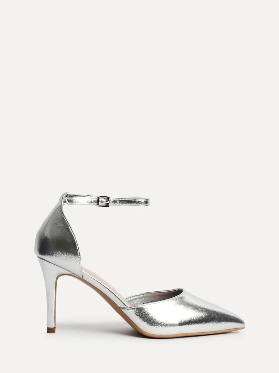 Linzi – Thea Closed Back Stiletto Escarpins et talons With Ankle Strap Argent Hot