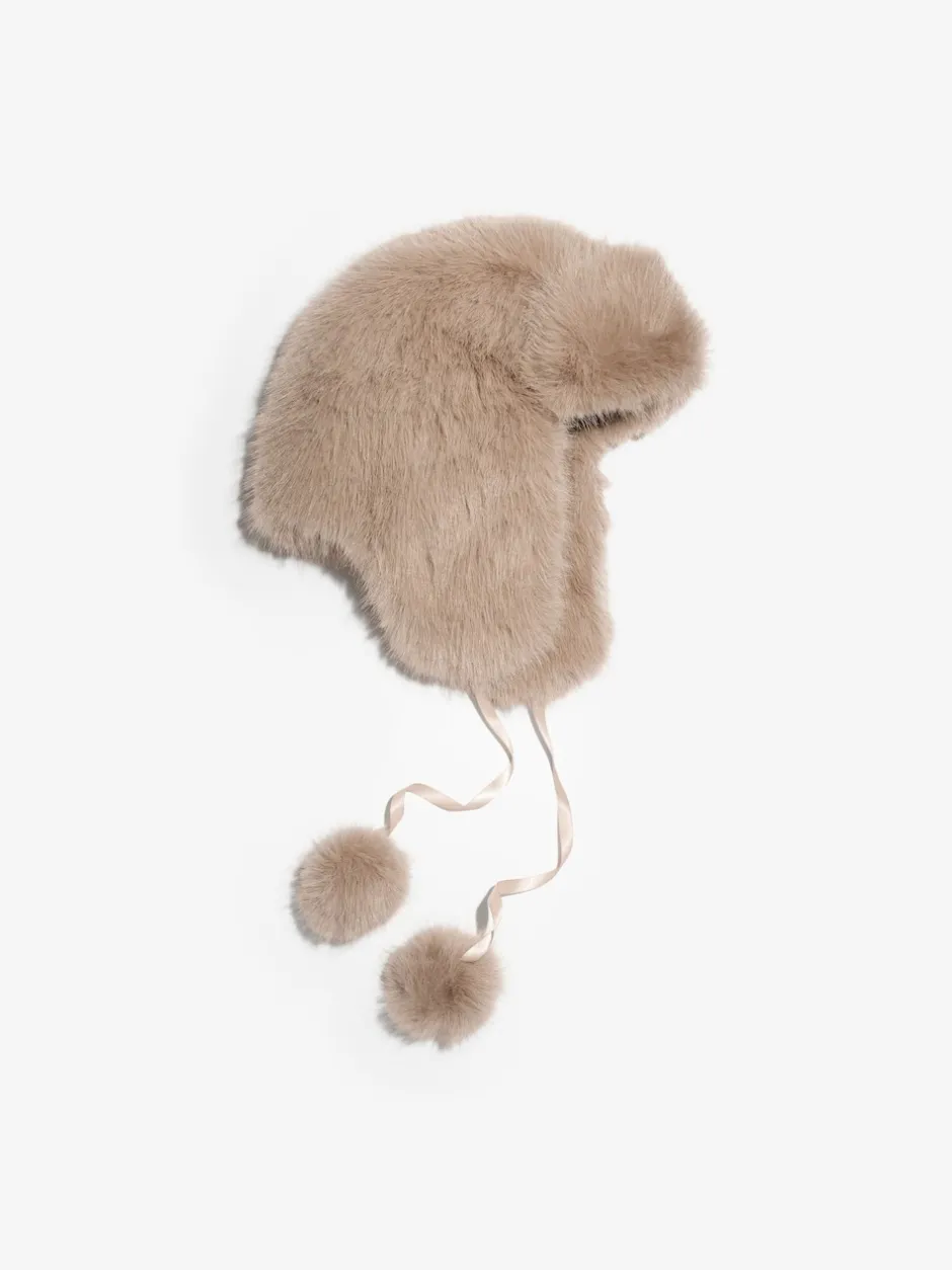 Lipsy neutre – Chapeau de trappeur en fausse fourrure avec pompons Outlet