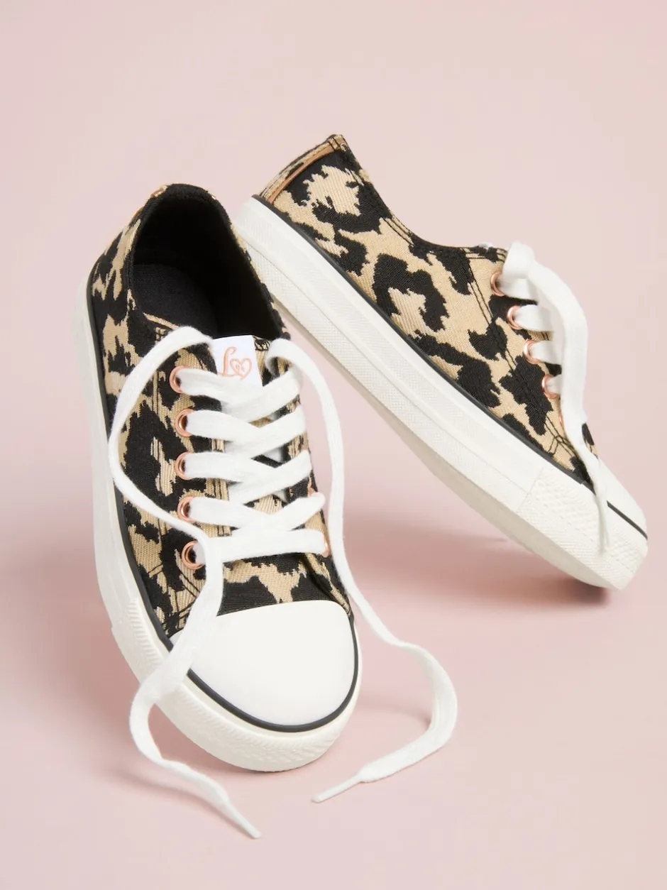 Lipsy Neutre imprimé léopard – Baskets de baseball basses en toile à lacets Sale